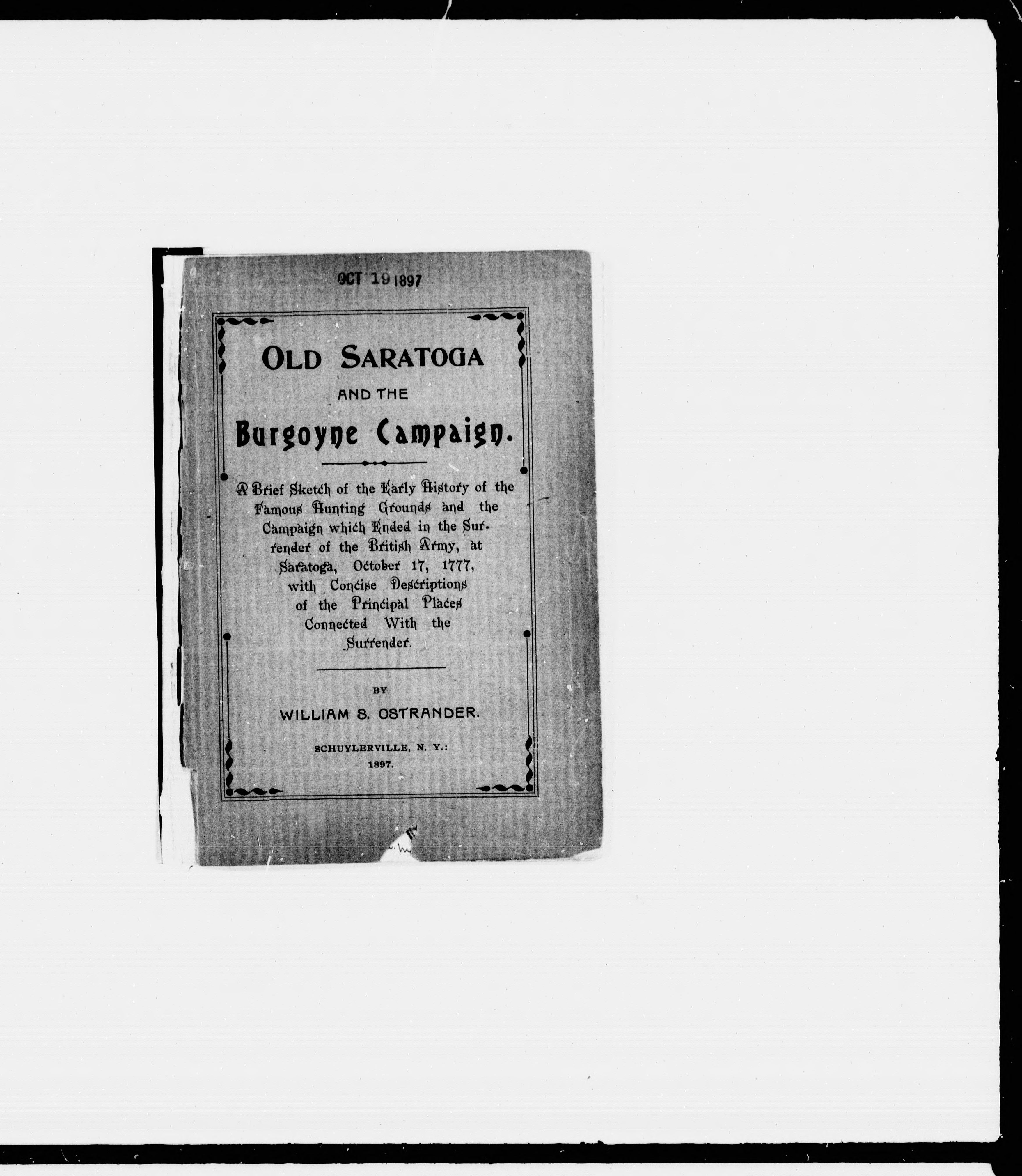 - Old Saratoga and the Burgoyne campaign : a brief sketch of the early history of the famous hunting grounds and the campaign which ended in the surrender of the British army, at Saratoga, October 17, 1777, with concise descriptions of the principal places connected with the surrender