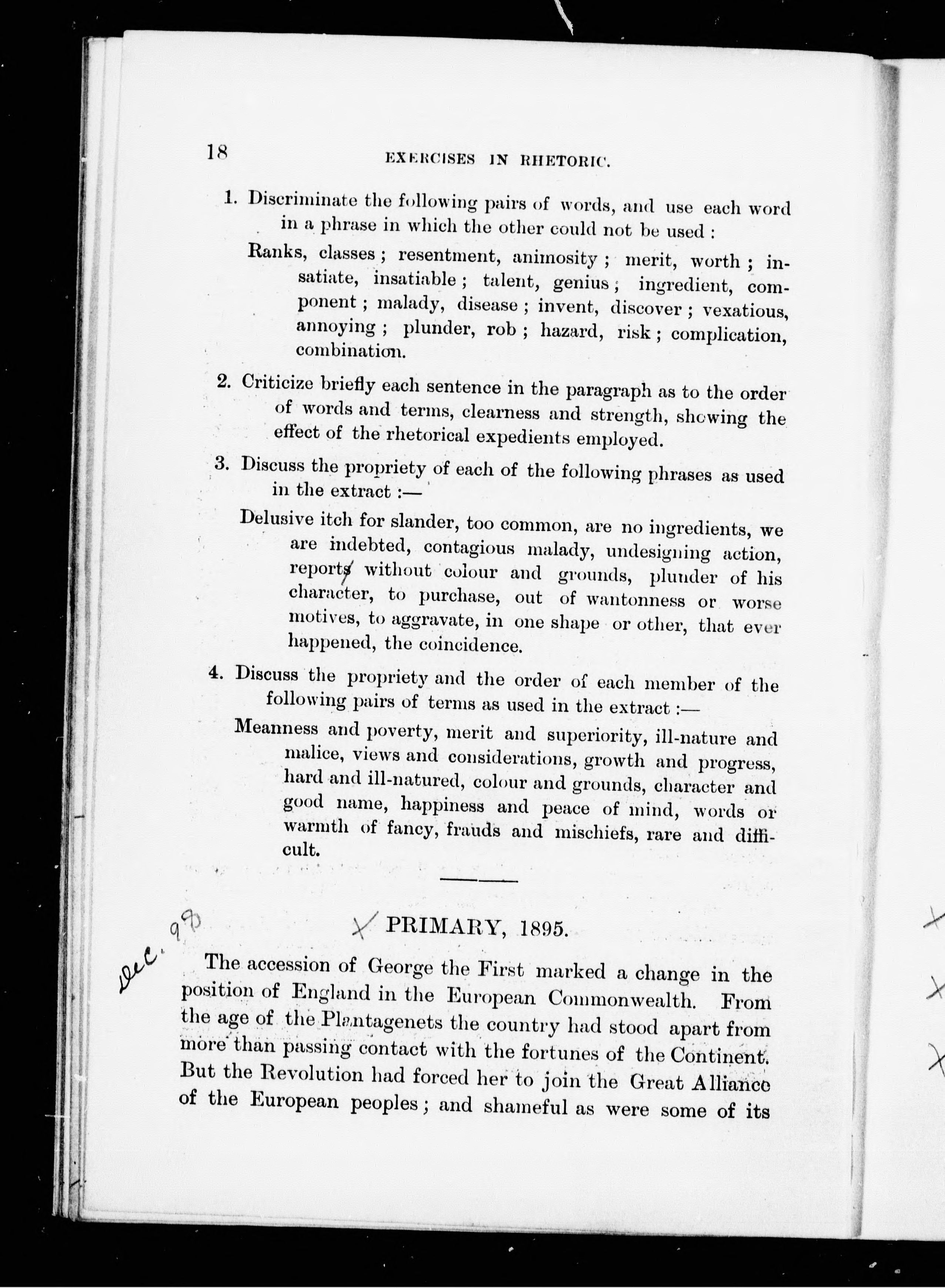 - Exercises in rhetoric : with examination papers for the use of candidates preparing for the primary examination