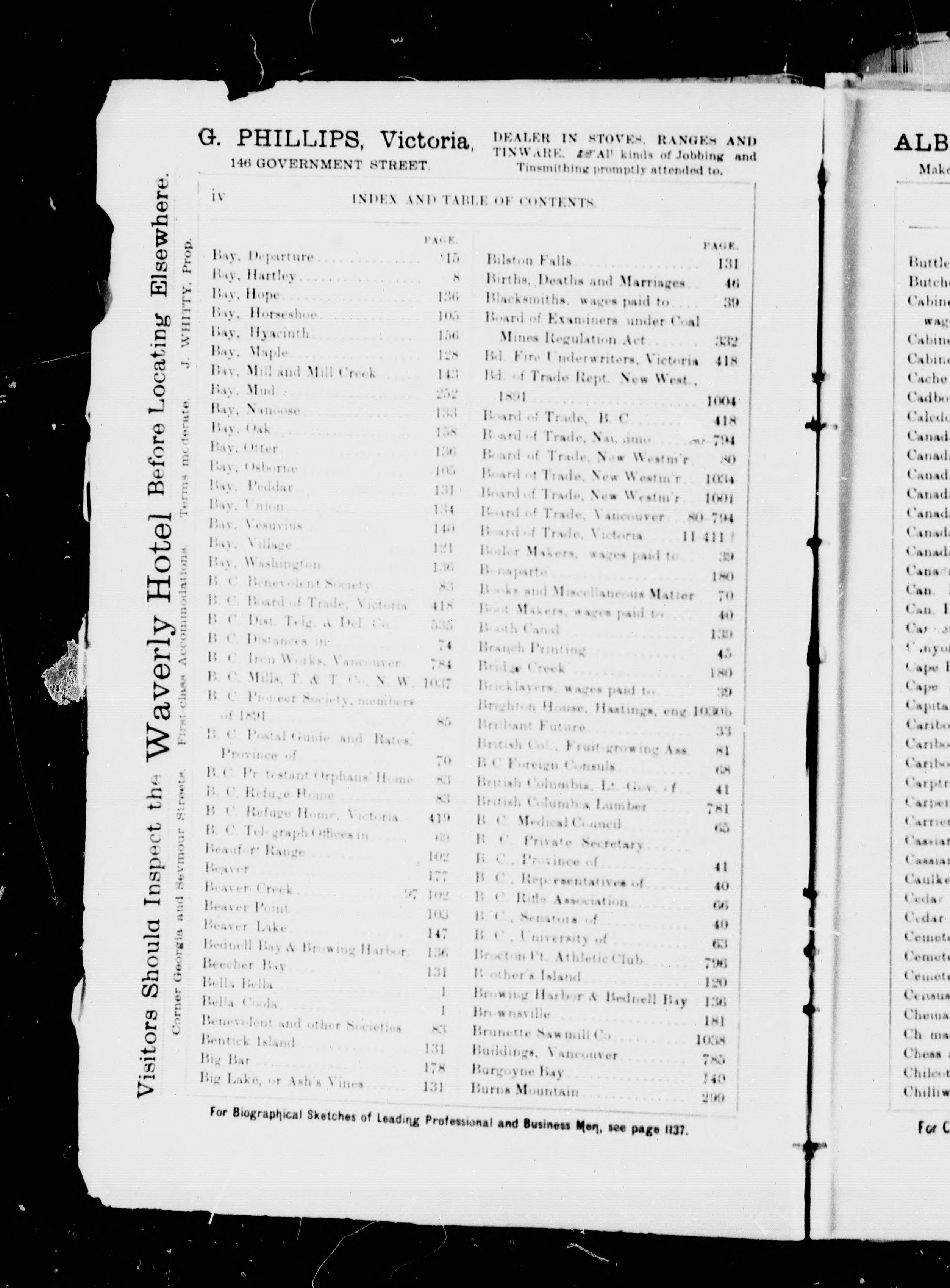 Williams' illustrated official British Columbia directory, 1892 : under the patronage of the Dominion and provincial governments, as well as the various municipalities throughout the province, containing general information and directories of all the cities and settlements in British Columbia, with a classified business directory.