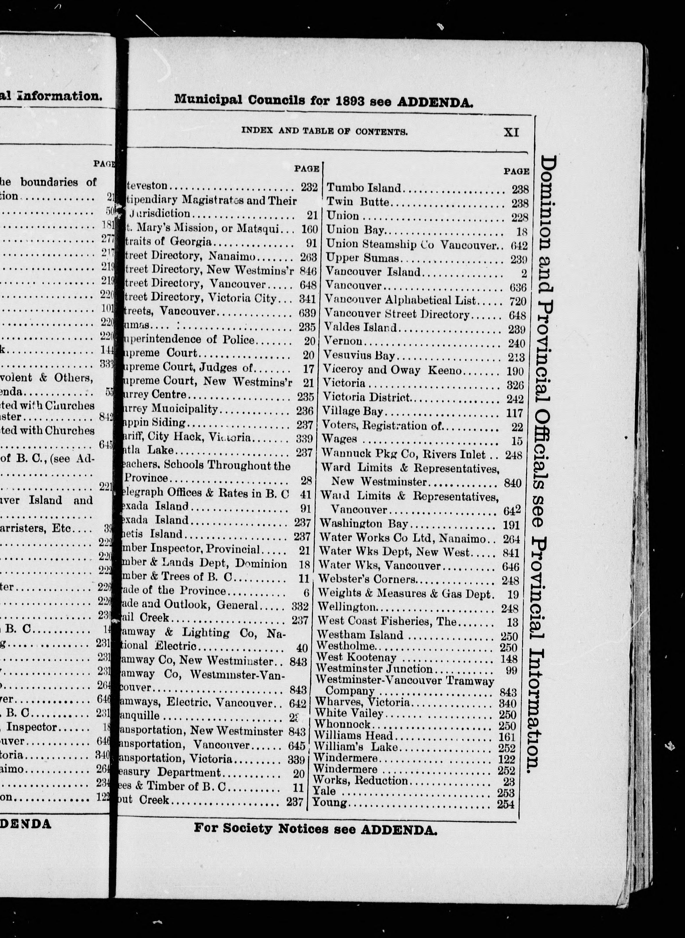 Victoria, B.C. : Victoria Print. Company, [1893?]; 1110 images, 1092 avec recherche en texte intégral