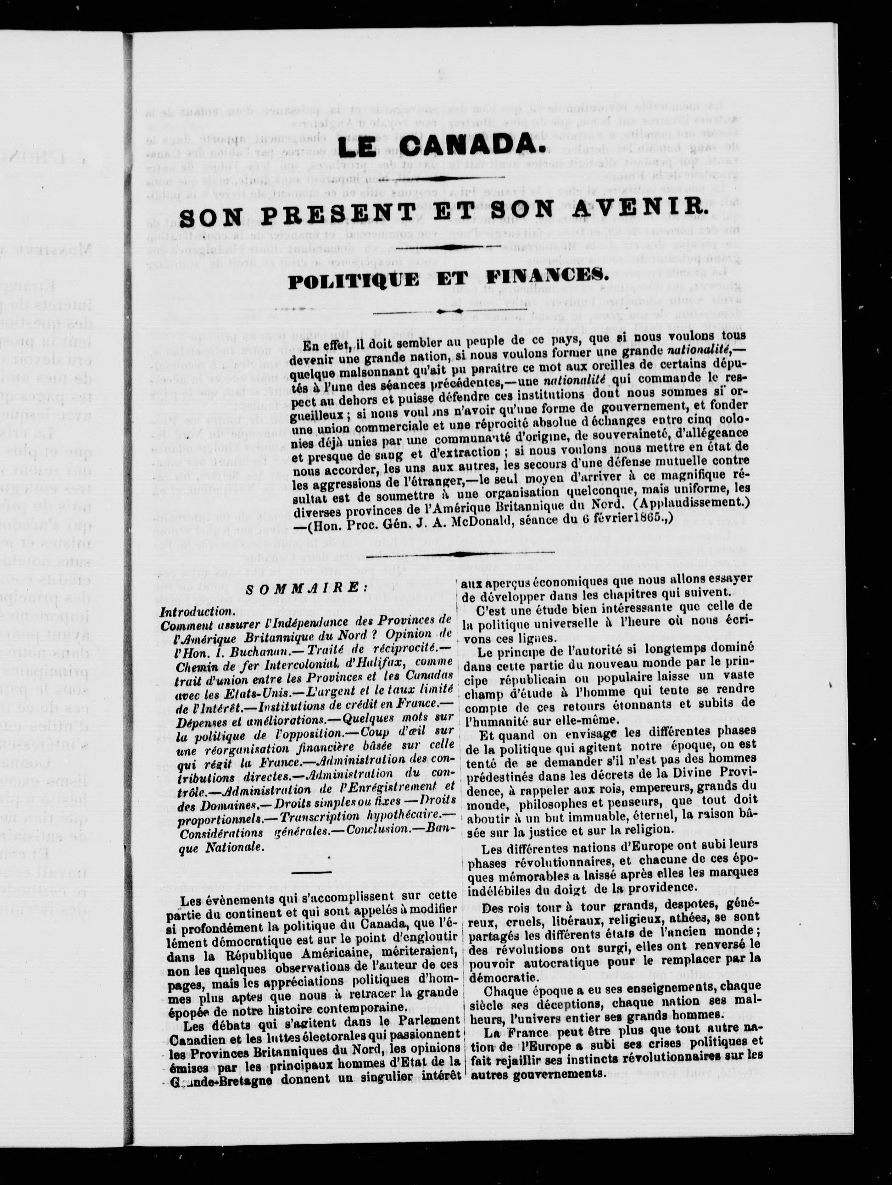 Etude du projet de confédération des provinces de l'Amérique britannique du Nord, au point de vue commercial et financier.