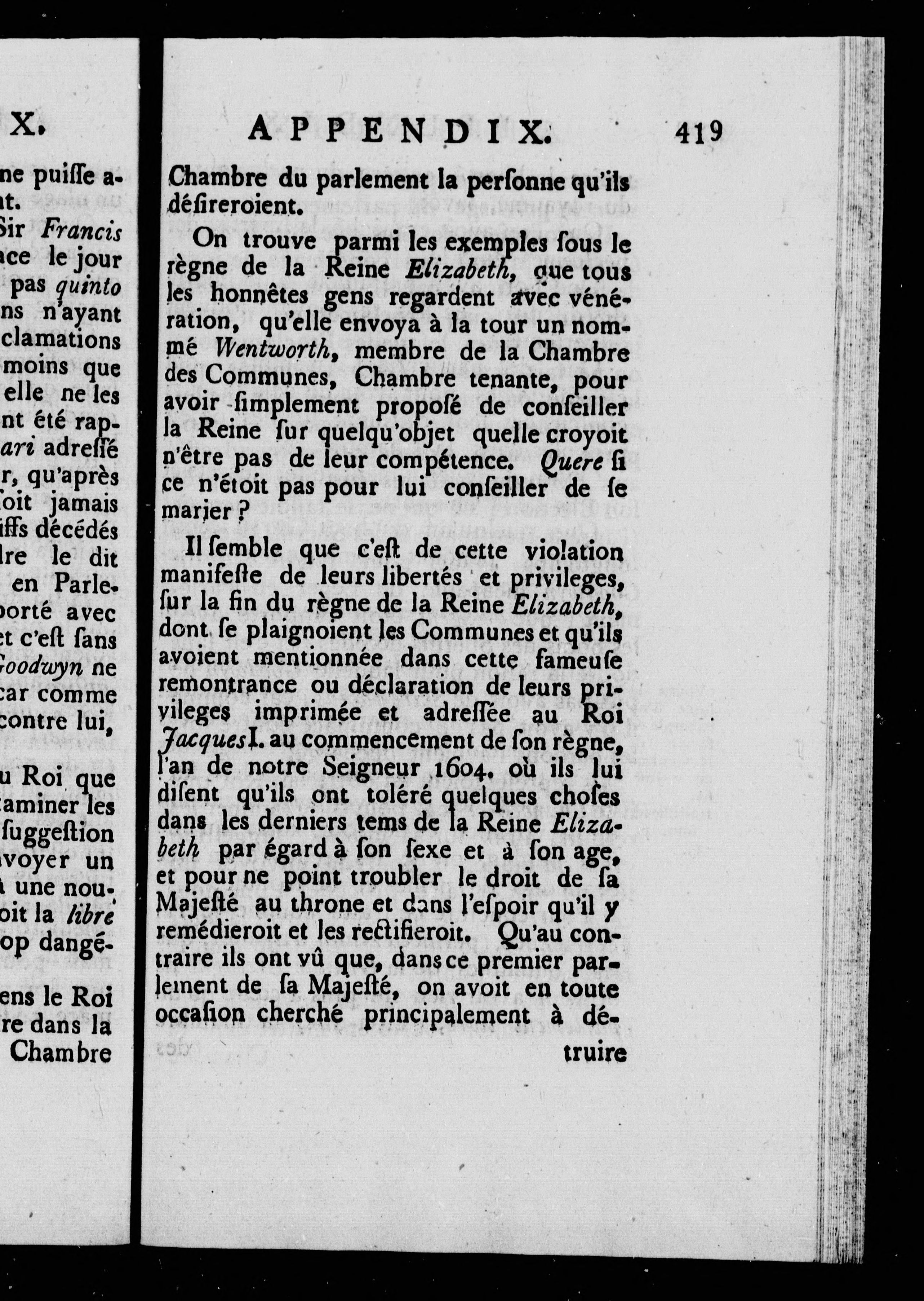 Lex parliamentaria ou Traité de la loi et coutume des parlements : montrant leur antiquité, noms, especes et qualités des trois états, et de la dignité & excellence des parlements, leur pouvoir et autorité; de l'election des membres de la Chambre des communes en géné ral, leurs privileges, qualifications et devoirs; des electeurs, leurs droits, devoirs et le mode d'élections; des retours en parlements, le devoir des shériffs et autres officiers à cet égard; de la maniere d'élire l'orateur, sa charge et son devoir; de la maniere de passer les bills, et les regles à observer dans la Chambre des communes; des sessions du parlement de sa prorogation et des ajournements, ensemble des propres loix et coutumes des parlements : avec le rapport d'un cas en Parlement entre Sir Francis Goodwyn et Sir John Fortescue, chevaliers du Comté de Bucks, 1. Jac. I.