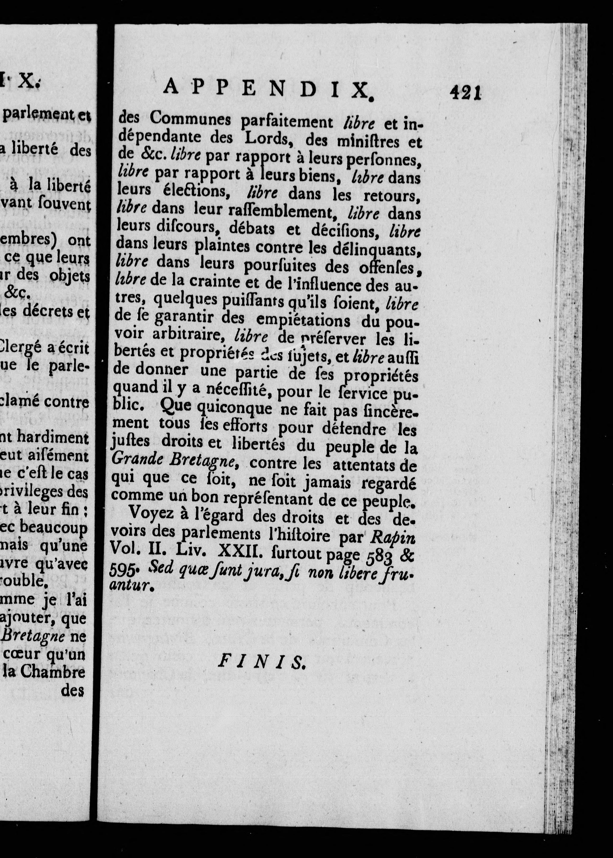 Lex parliamentaria ou Traité de la loi et coutume des parlements : montrant leur antiquité, noms, especes et qualités des trois états, et de la dignité & excellence des parlements, leur pouvoir et autorité; de l'election des membres de la Chambre des communes en géné ral, leurs privileges, qualifications et devoirs; des electeurs, leurs droits, devoirs et le mode d'élections; des retours en parlements, le devoir des shériffs et autres officiers à cet égard; de la maniere d'élire l'orateur, sa charge et son devoir; de la maniere de passer les bills, et les regles à observer dans la Chambre des communes; des sessions du parlement de sa prorogation et des ajournements, ensemble des propres loix et coutumes des parlements : avec le rapport d'un cas en Parlement entre Sir Francis Goodwyn et Sir John Fortescue, chevaliers du Comté de Bucks, 1. Jac. I.