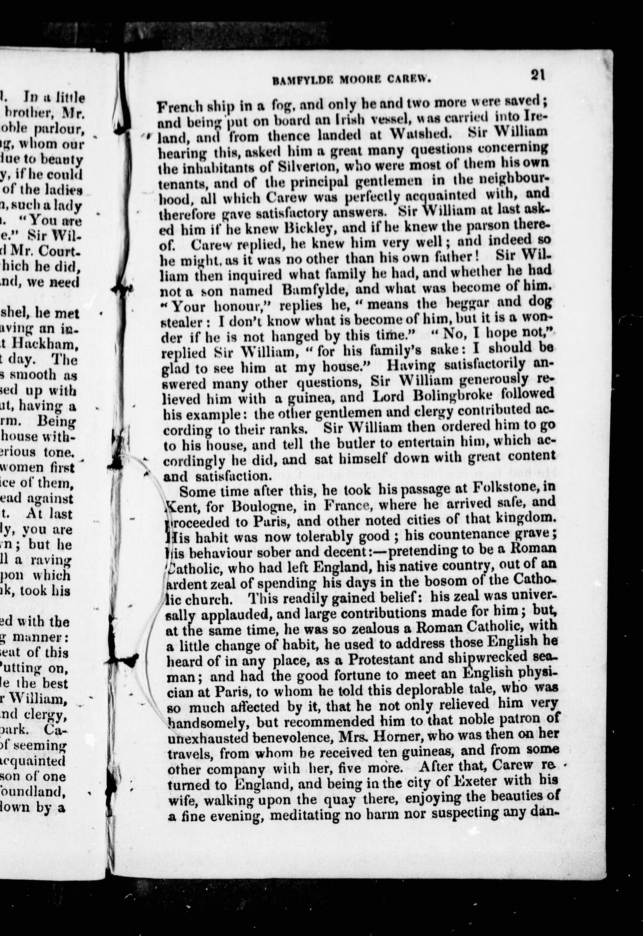The Kinc [i.e. King] of the beggars, or, The history of Bamfylde Moore Carew : who was the son of a gentleman near Plymouth and ran away from his father and joined a gang of gipsies : detailing the numerous tricks and impositions practised by him in various disguises.
