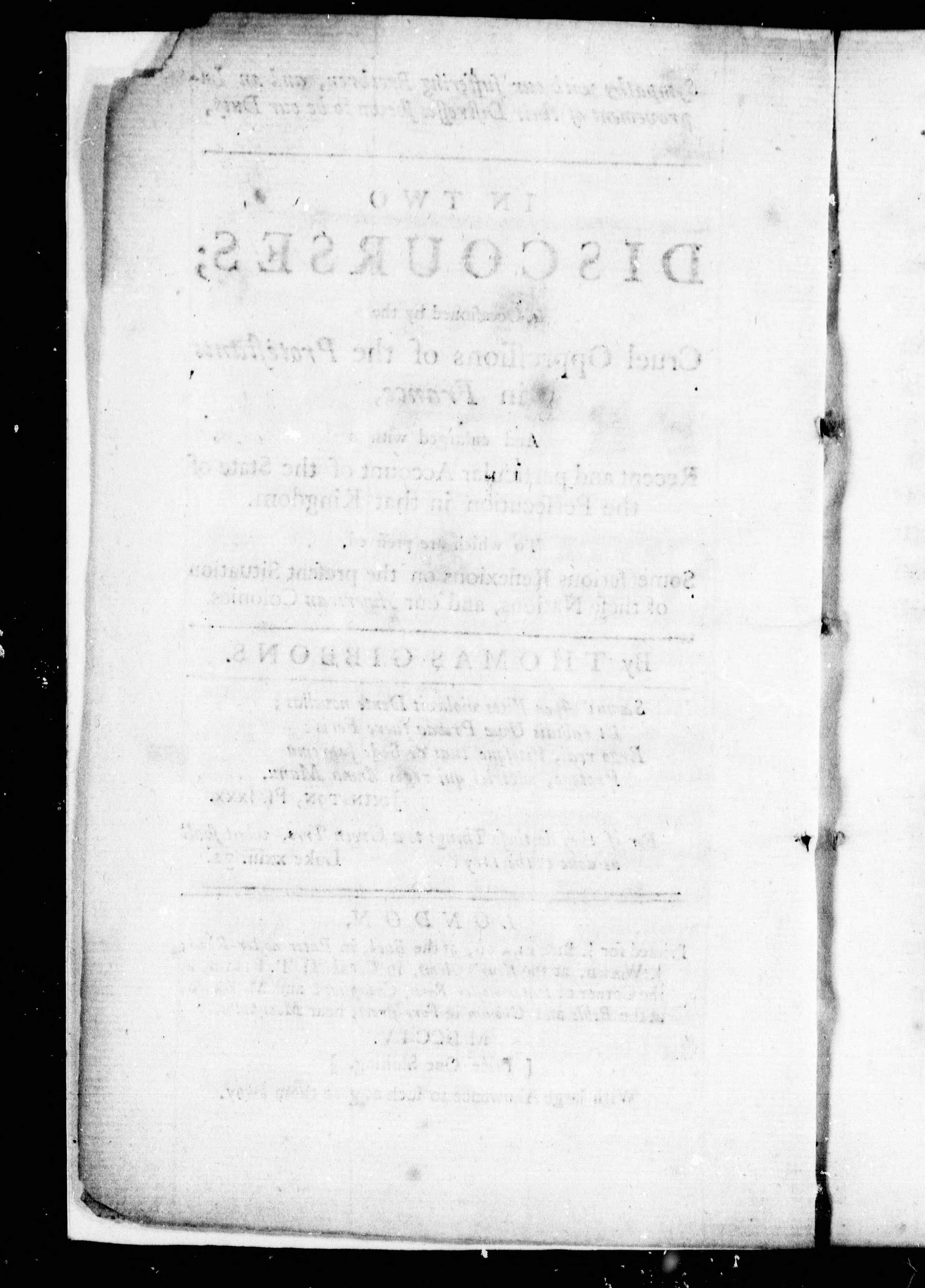 - Sympathy with our suffering brethren, and an improvement of their distresses shewn to be our duty : in two discourses occasioned by the cruel oppressions of the Protestants in France, and enlarged with a recent and particular account of the state of the persecution in that kingdom : to which are prefixed some serious reflexions on the present situation of these nations, and our American colonies