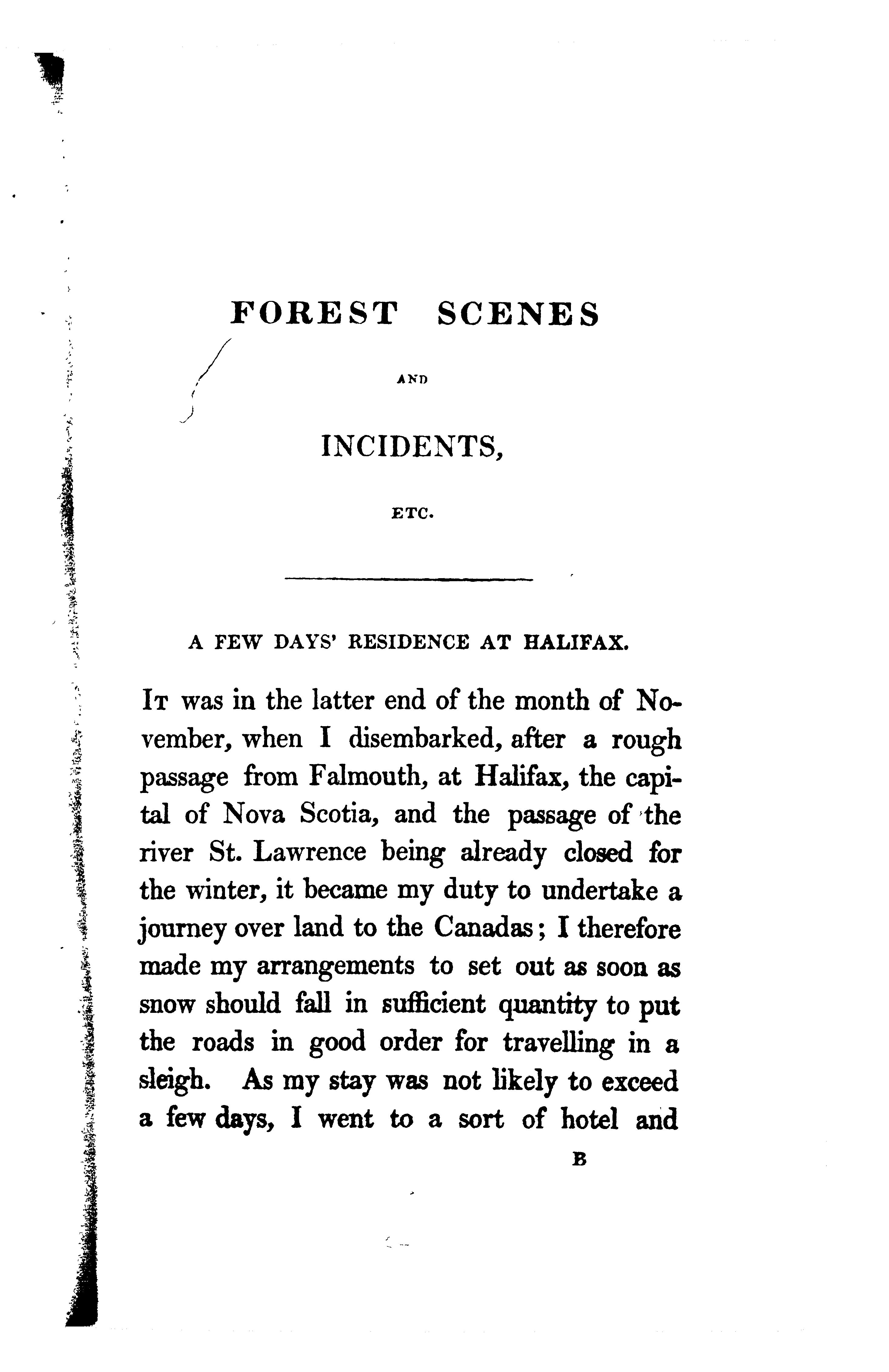 Forest scenes and incidents in the wilds of North America : being a diary of a winter's route from Halifax to the Canadas, and during four months' residence in the woods on the borders of Lakes Huron and Simcoe