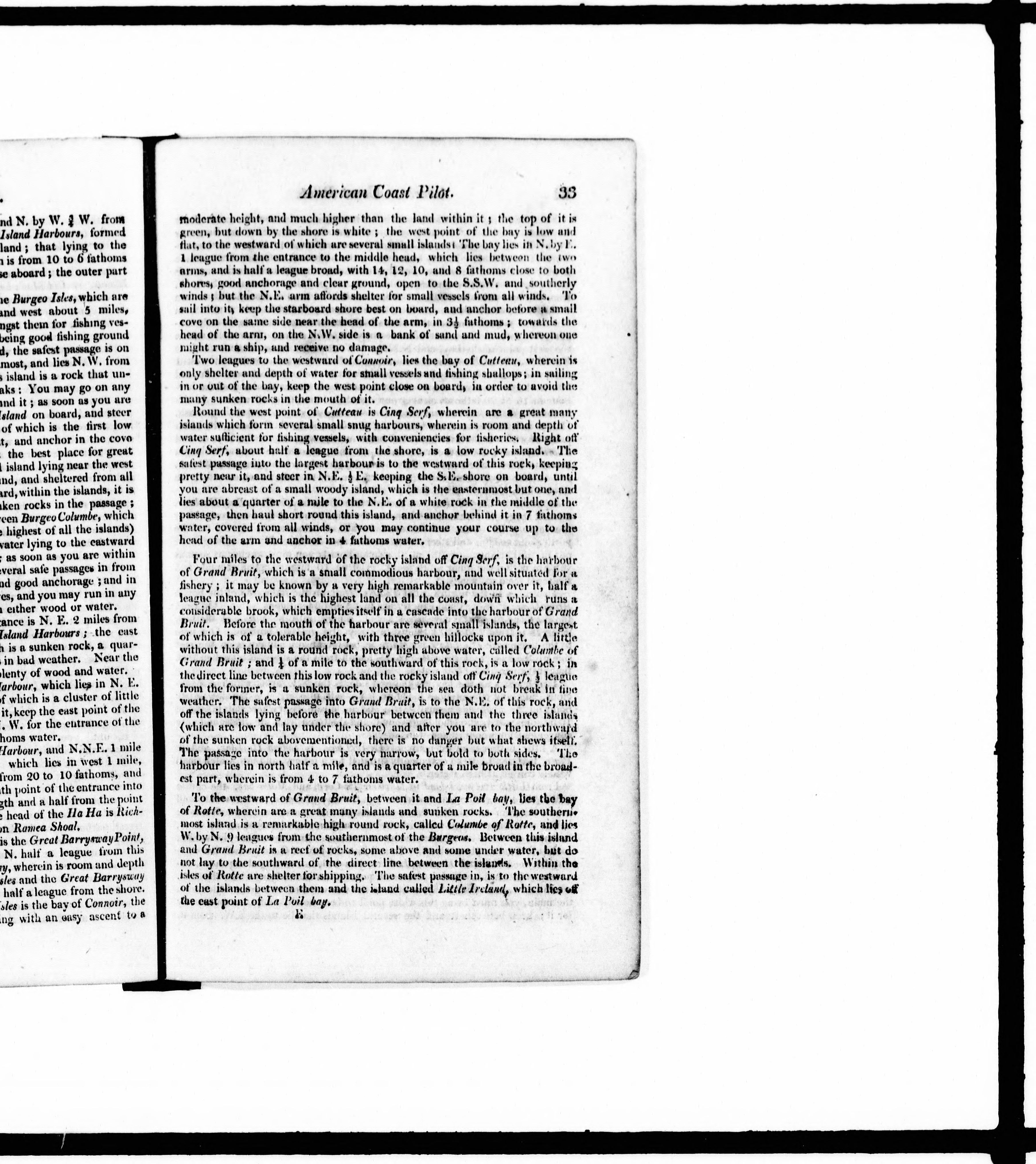 The American coast pilot : containing the courses and distances between the principal harbours, capes and headlands, from Passamaquoddy, through the Gulf of Florida : with directions for sailing into the same, describing the soundings, bearings of the light-houses and beacons from the rocks, shoals, ledges, &c. : together with the courses and distances from Cape Cod and Cape Ann to Georges' Bank, through the south and east channels, and the setting of the currents with latitudes and longitudes of the principal harbours on the coast, together with a tide table