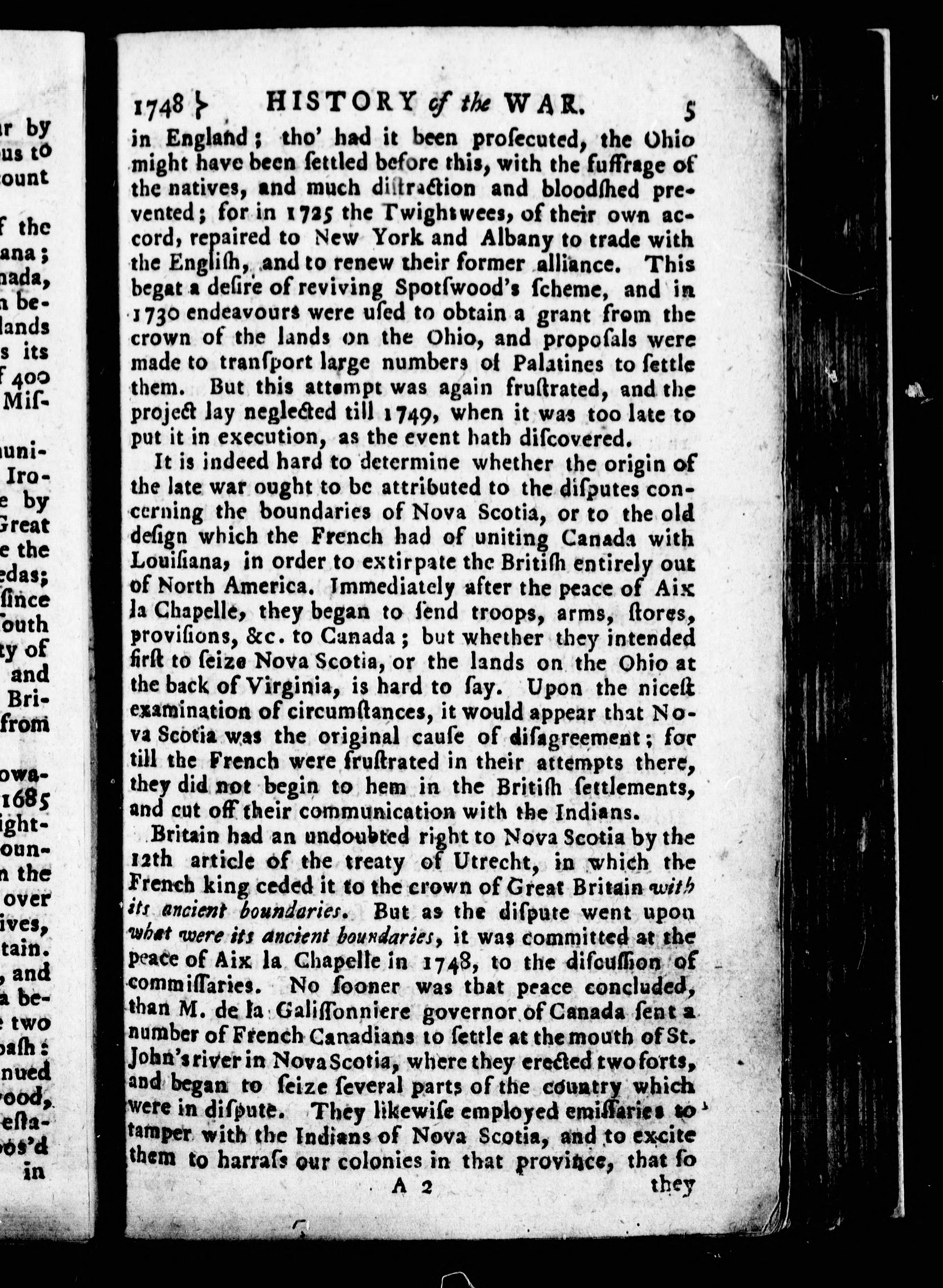 The History of the late war, from the commencement of hostilities in 1749, to the definitive treaty of peace in 1763 : wherein, the original cause of disagreement is traced, and every transaction and occurrence, worthy of public notice, through the course of the war in Europe, Asia, Africa, and America, are faithfully narrated.