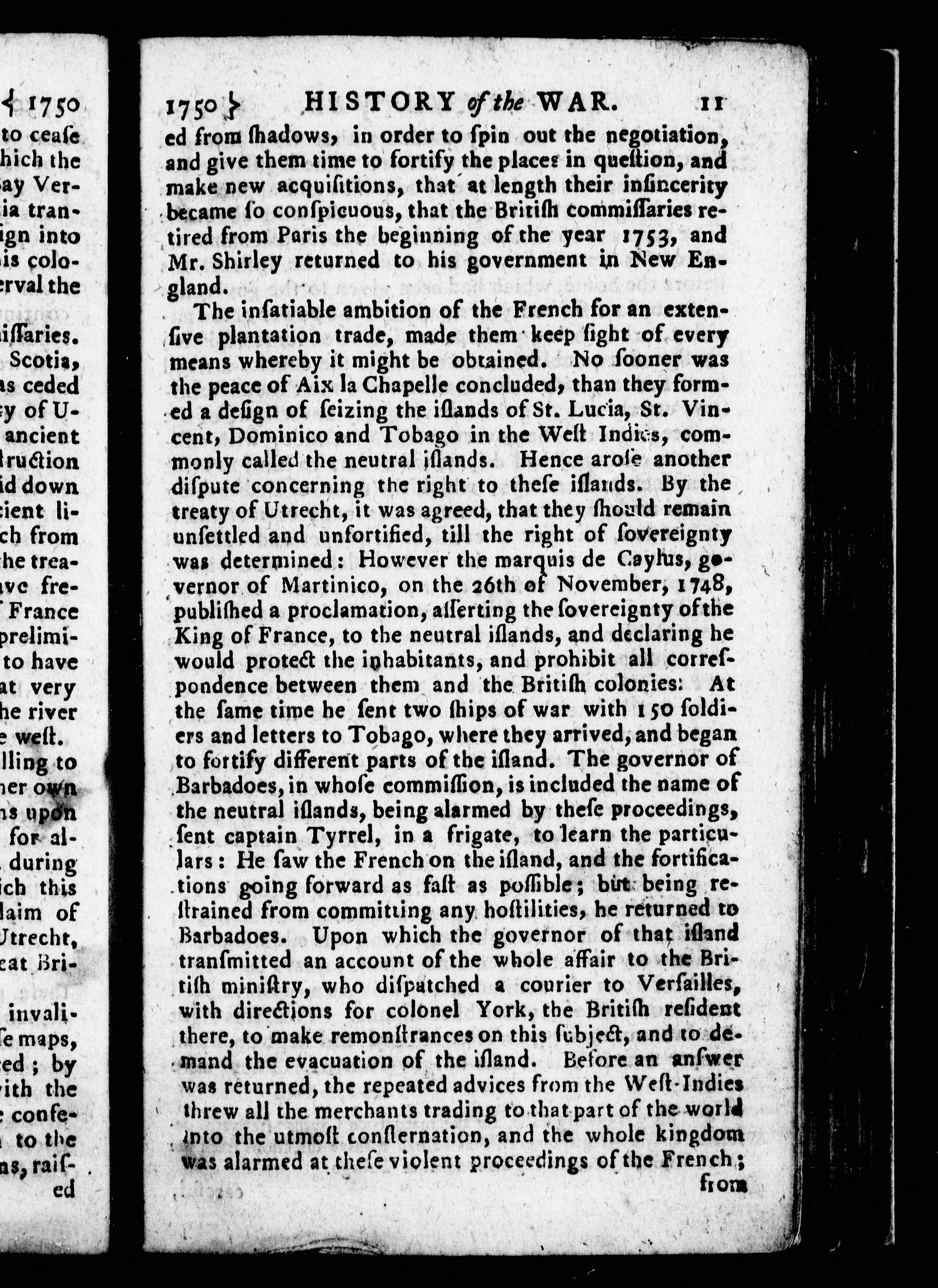 The History of the late war, from the commencement of hostilities in 1749, to the definitive treaty of peace in 1763 : wherein, the original cause of disagreement is traced, and every transaction and occurrence, worthy of public notice, through the course of the war in Europe, Asia, Africa, and America, are faithfully narrated.