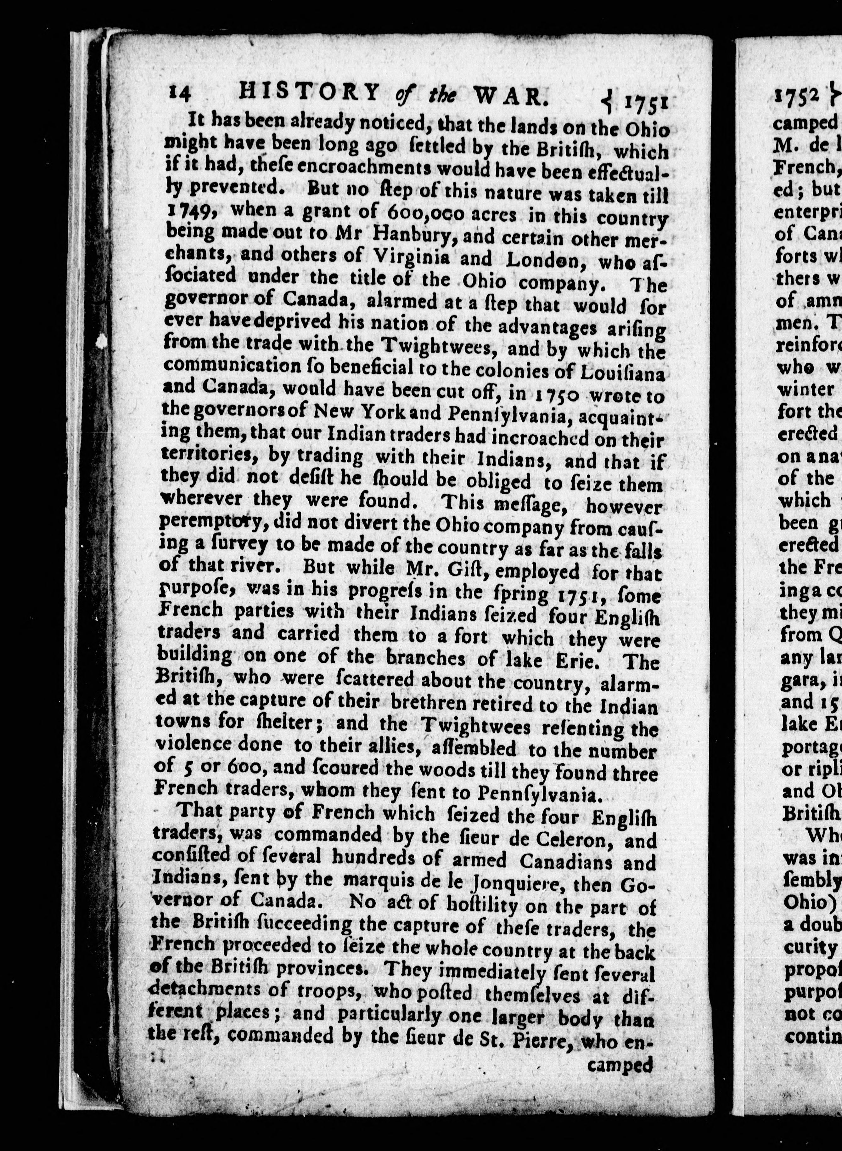 The History of the late war, from the commencement of hostilities in 1749, to the definitive treaty of peace in 1763 : wherein, the original cause of disagreement is traced, and every transaction and occurrence, worthy of public notice, through the course of the war in Europe, Asia, Africa, and America, are faithfully narrated.