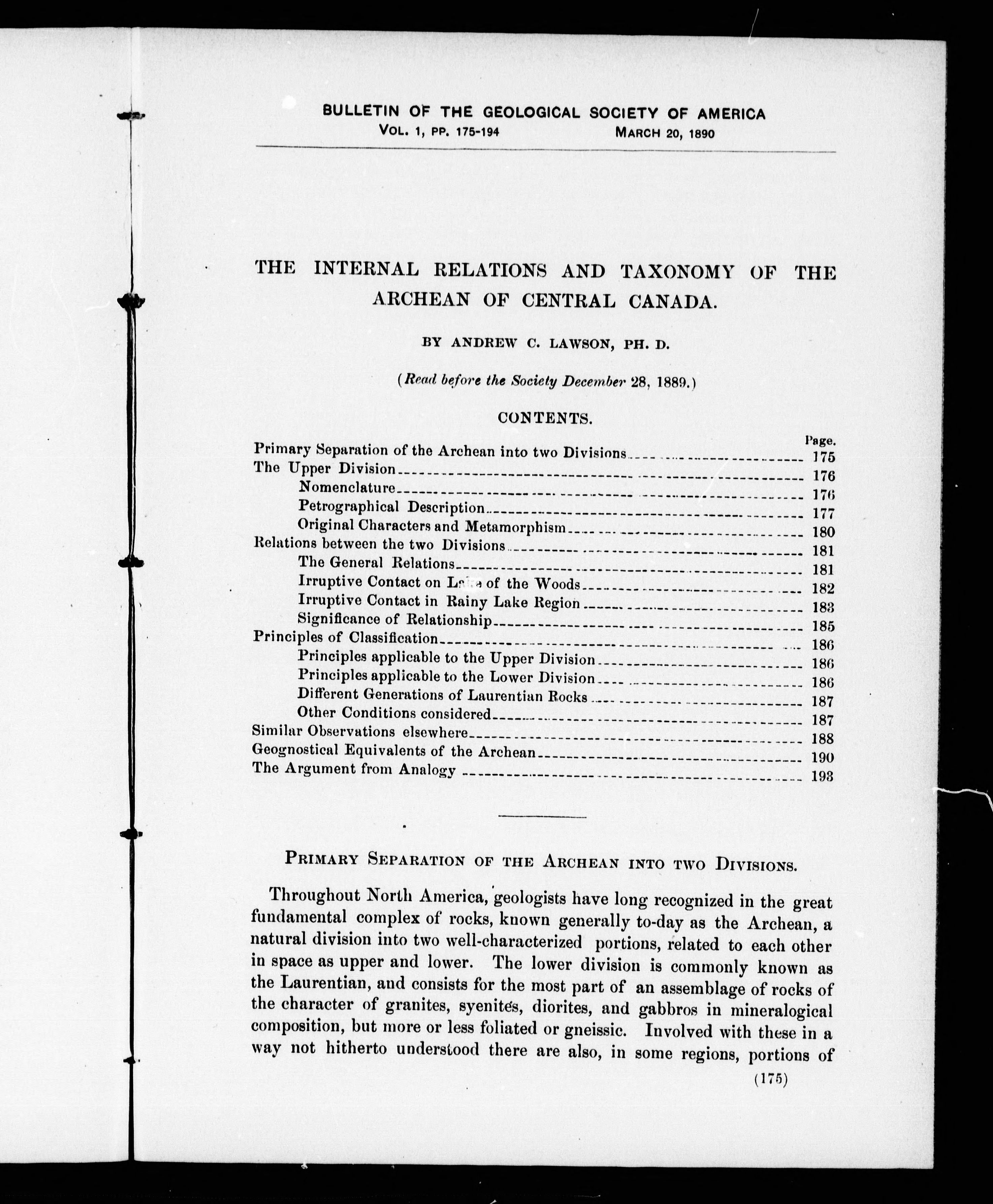 From: Bulletin of the Geological Society of America, Vol. 1. pp. 163-174 ; 175-194.