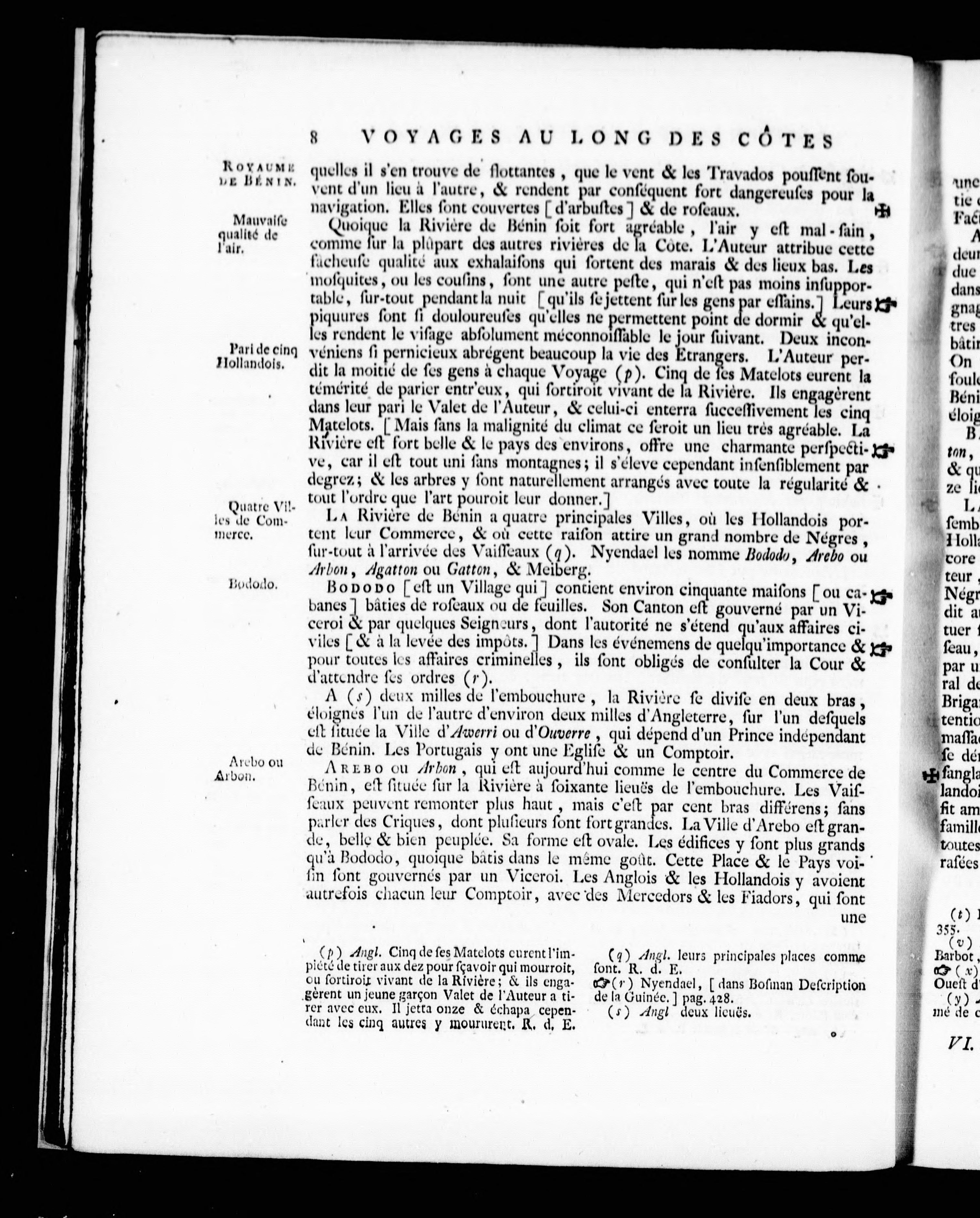 Histoire générale des voyages ou Nouvelle collection de toutes les relations de voyages par mer et par terre, qui ont été publiées jusqu'à présent dans les différentes langues de toutes les nations connues : contenant ce qu'il y a de plus remarquable, de plus utile, & de mieux avéré, dans les pays où les voyageurs ont pénétré, touchant leur situation, leur étendue, leurs limites ... : avec les moeurs et les usages des habitans ... : pour former un systême complet d'histoire et de géographie moderne, qui représentera l'état actuel de toutes les nations : enrichie de cartes géographiques nouvellement composé es sur les observations les plus authentiques ; de plans et de perspectives, de figures d'animaux, de végétaux, habits, antiquités, &c.