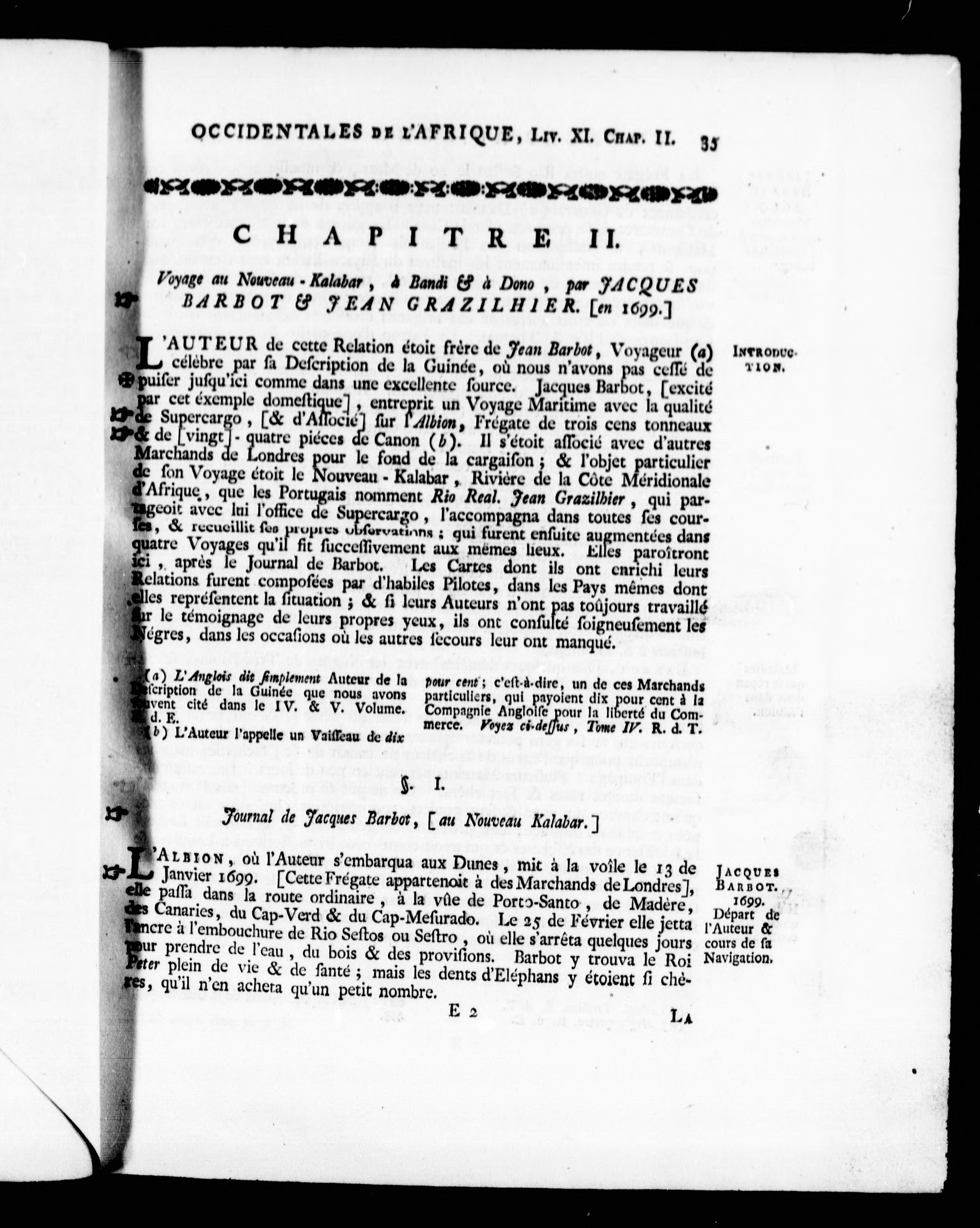 Histoire générale des voyages ou Nouvelle collection de toutes les relations de voyages par mer et par terre, qui ont été publiées jusqu'à présent dans les différentes langues de toutes les nations connues : contenant ce qu'il y a de plus remarquable, de plus utile, & de mieux avéré, dans les pays où les voyageurs ont pénétré, touchant leur situation, leur étendue, leurs limites ... : avec les moeurs et les usages des habitans ... : pour former un systême complet d'histoire et de géographie moderne, qui représentera l'état actuel de toutes les nations : enrichie de cartes géographiques nouvellement composé es sur les observations les plus authentiques ; de plans et de perspectives, de figures d'animaux, de végétaux, habits, antiquités, &c.