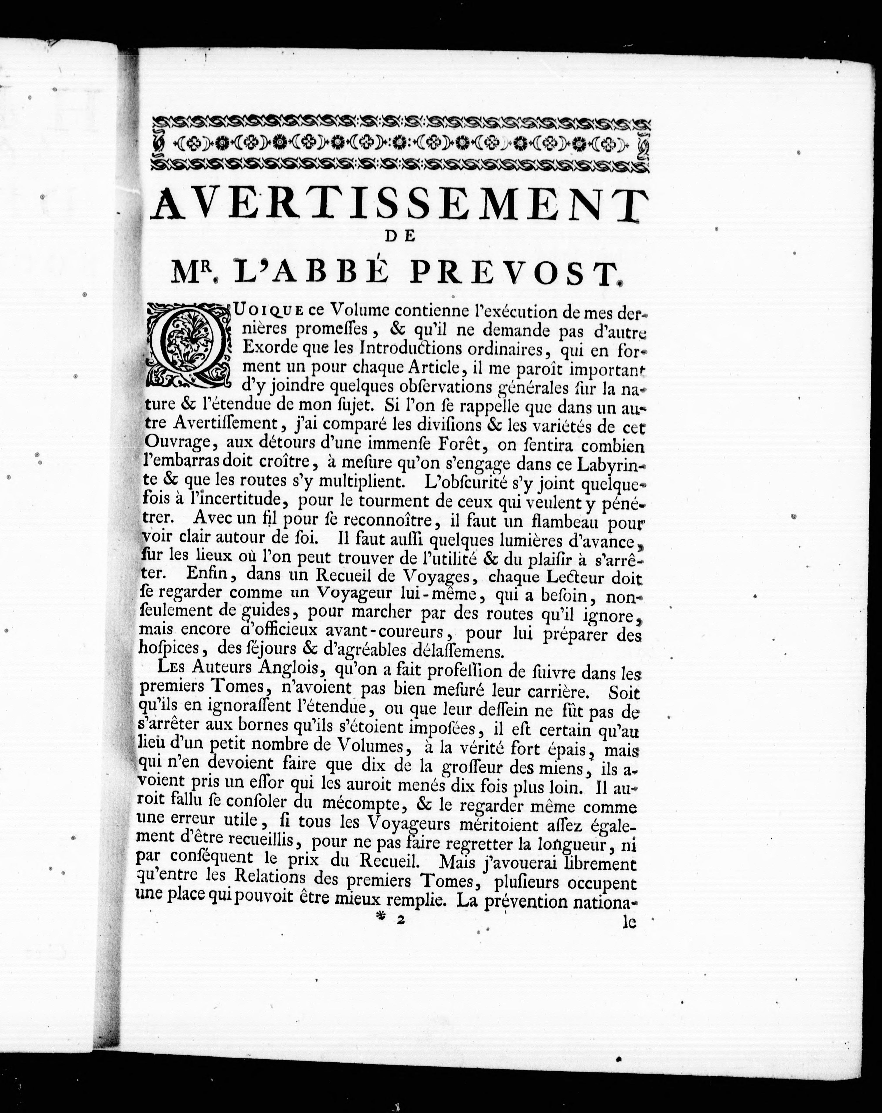 Histoire générale des voyages ou Nouvelle collection de toutes les relations de voyages par mer et par terre, qui ont été publiées jusqu'à présent dans les différentes langues de toutes les nations connues : contenant ce qu'il y a de plus remarquable, de plus utile, & de mieux avéré, dans les pays où les voyageurs ont pénétré, touchant leur situation, leur étendue, leurs limites ... : avec les moeurs et les usages des habitans ... : pour former un systême complet d'histoire et de géographie moderne, qui représentera l'état actuel de toutes les nations : enrichie de cartes géographiques nouvellement composé es sur les observations les plus authentiques ; de plans et de perspectives, de figures d'animaux, de végétaux, habits, antiquités, &c.