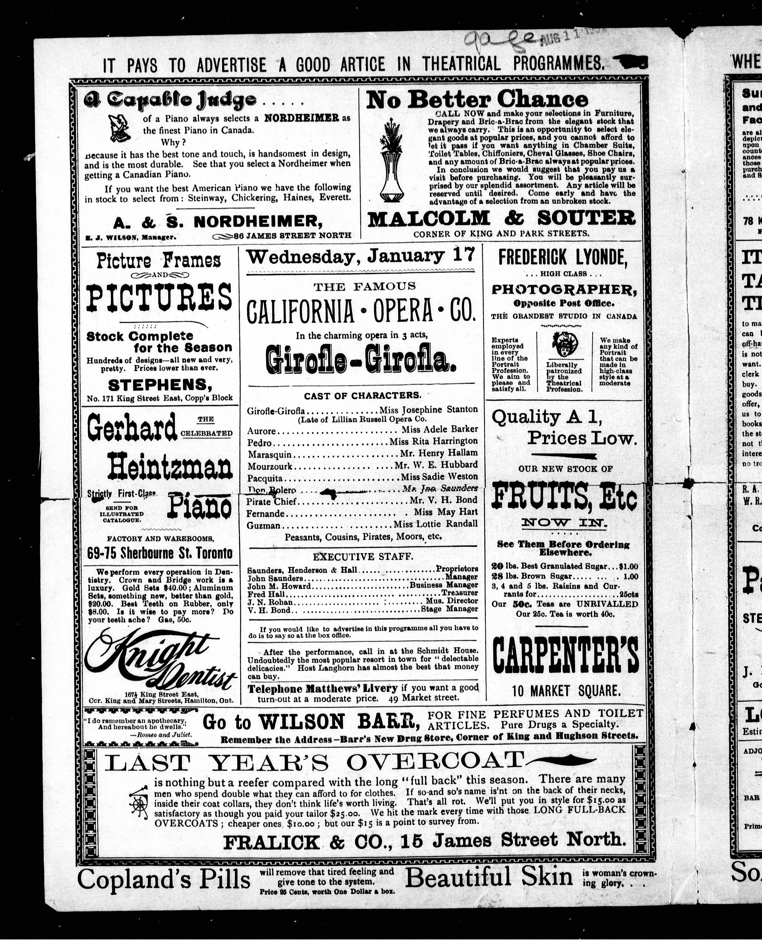 Cover title: Grand Opera House Programme, Hamilton, Canada, Season 1893-94.