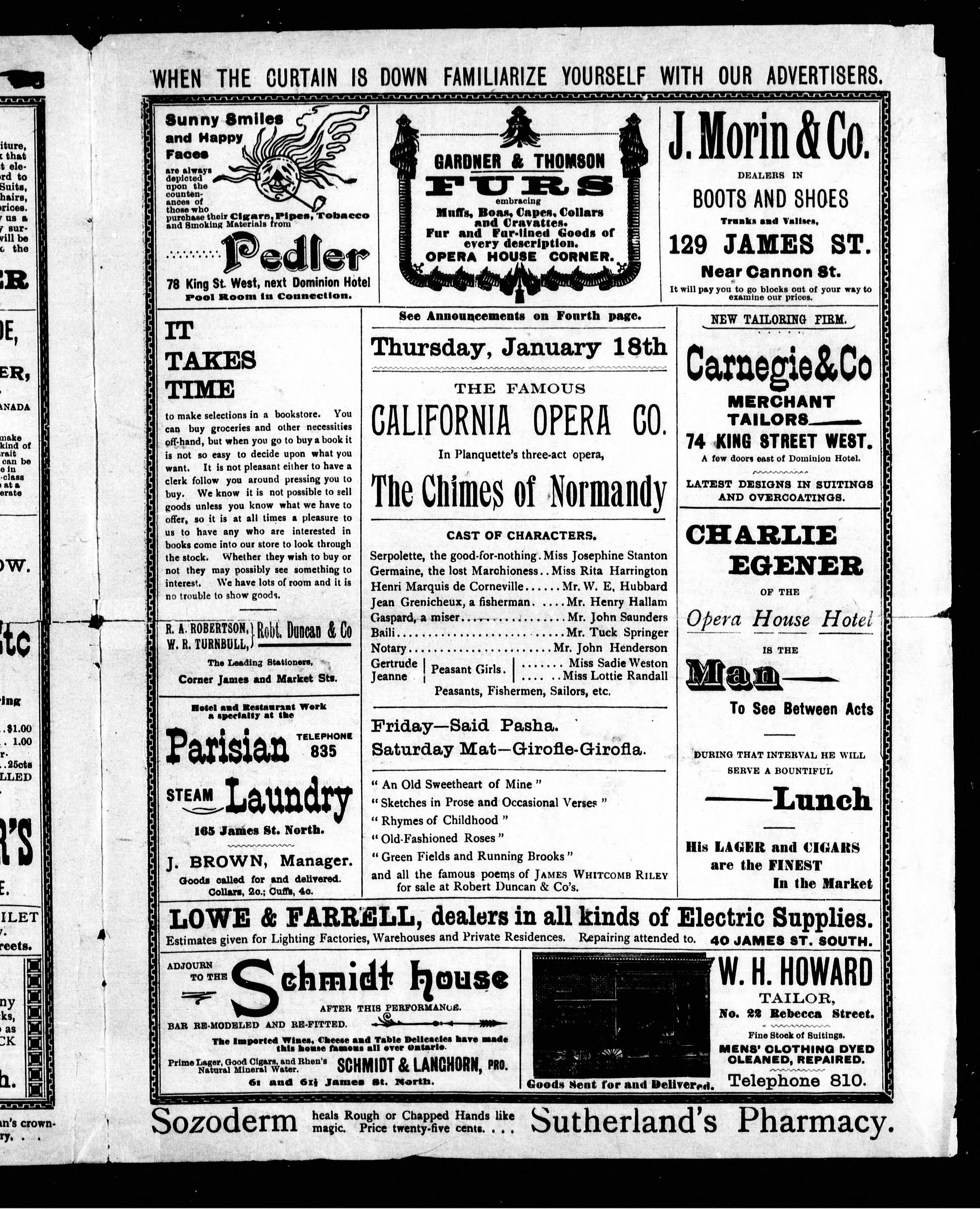 Cover title: Grand Opera House Programme, Hamilton, Canada, Season 1893-94.