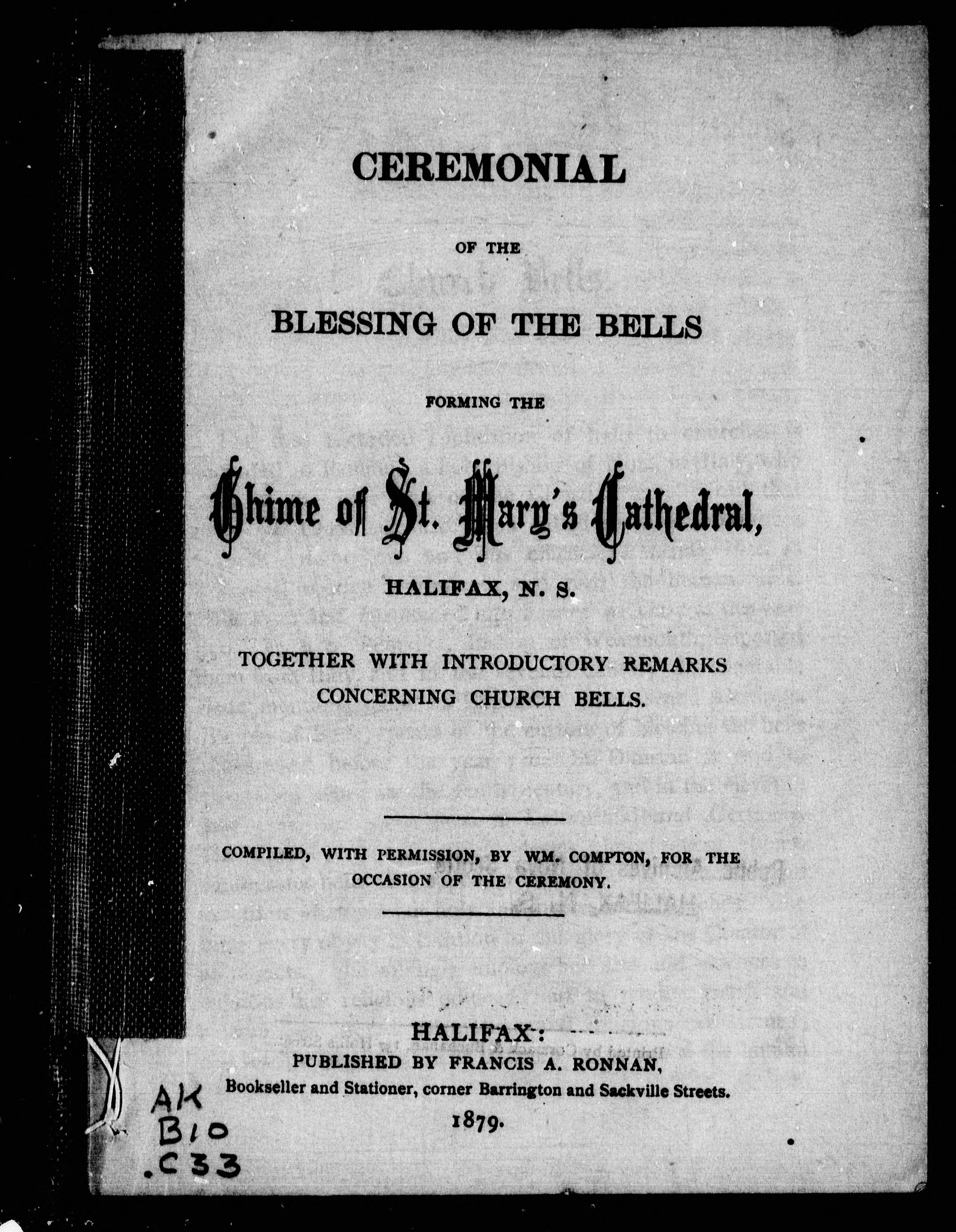 Ceremonial of the blessing of the bells forming the chime of St. Mary' s Cathedral, Halifax, N.S. : together with introductory remarks concerning church bells