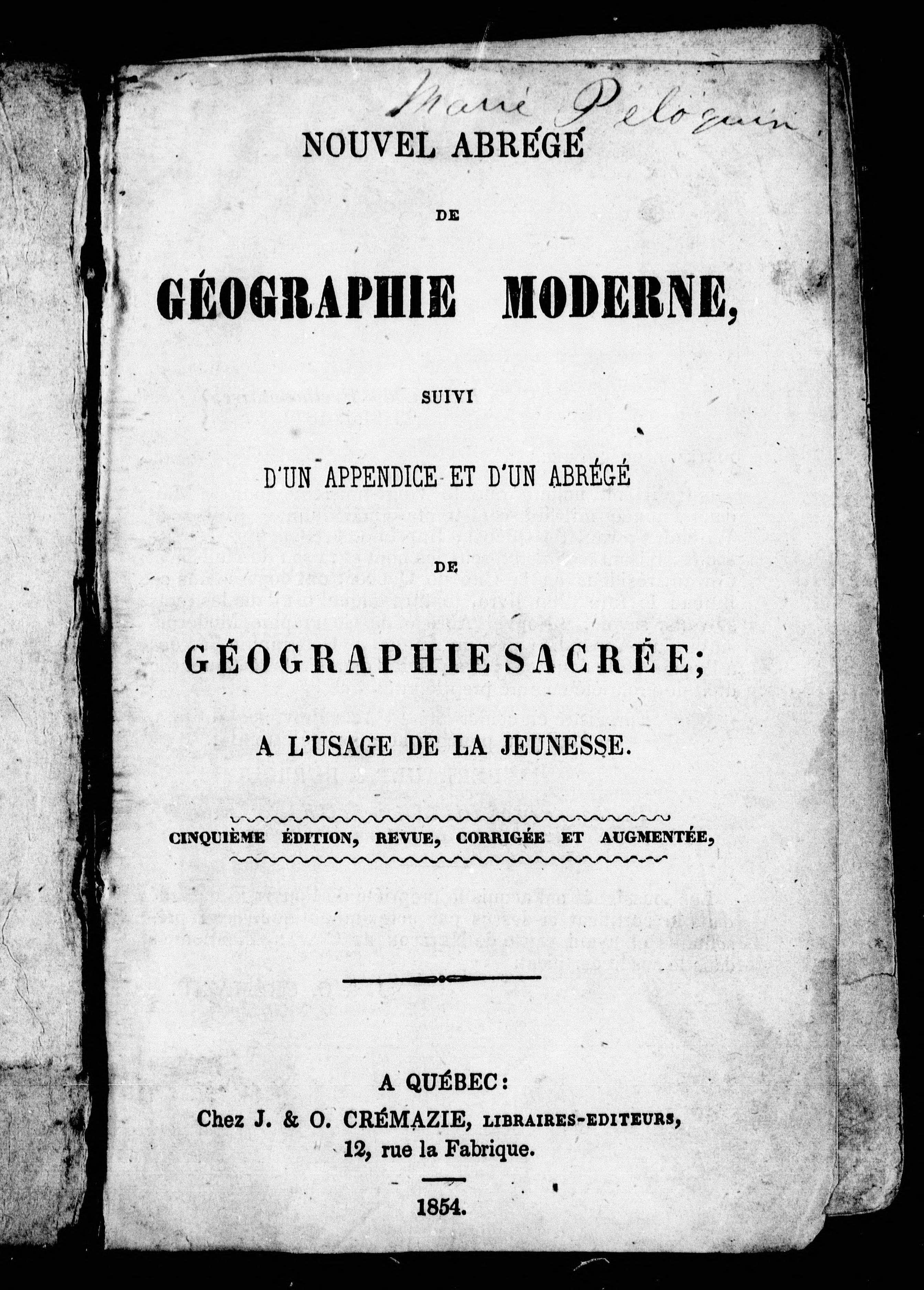 Québec : J. and O. Crémazie, 1854.; 425 images, 417 avec recherche en texte intégral