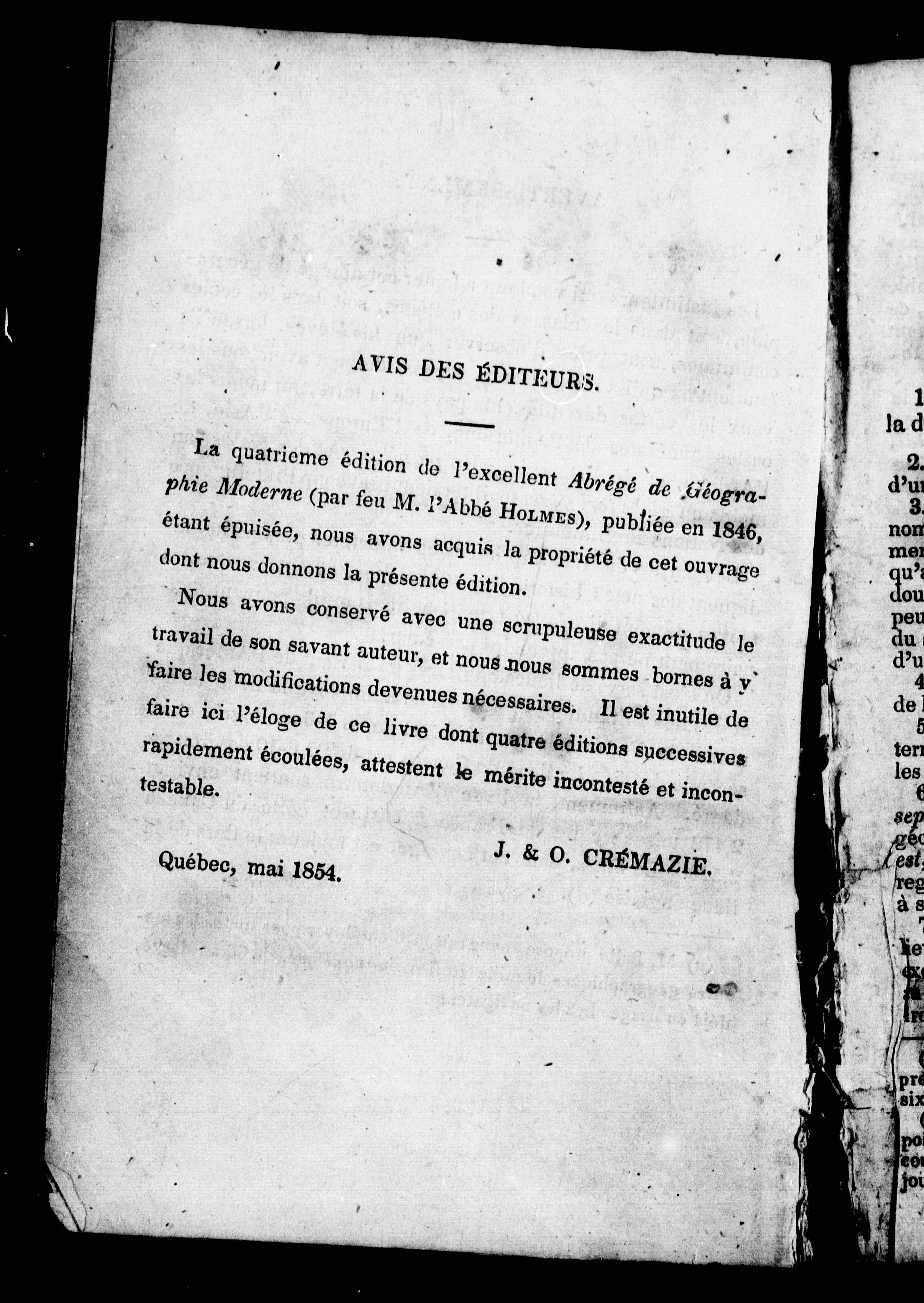 Québec : J. and O. Crémazie, 1854.; 425 images, 417 avec recherche en texte intégral