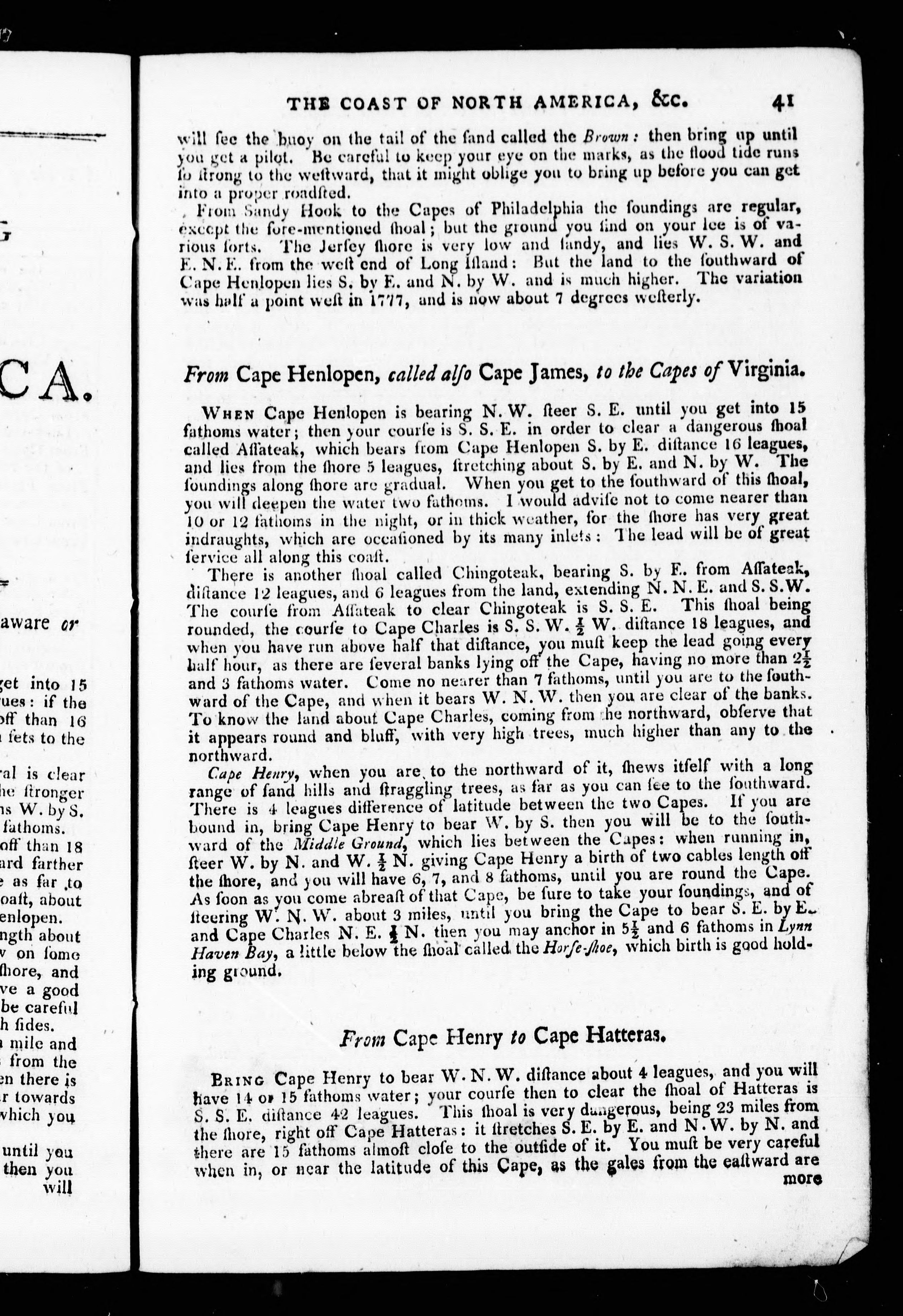 - New directions for sailing along the coast of North America, and into its several harbours : commencing at Halifax in Nova Scotia, and including the whole navigation to Cape Florida : carefully compiled from Captain Holland's surveys and journals ... to which is added a particular description of the coast from New York to St. Augustin : with complete sailing instructions and useful nautical tables and remarks