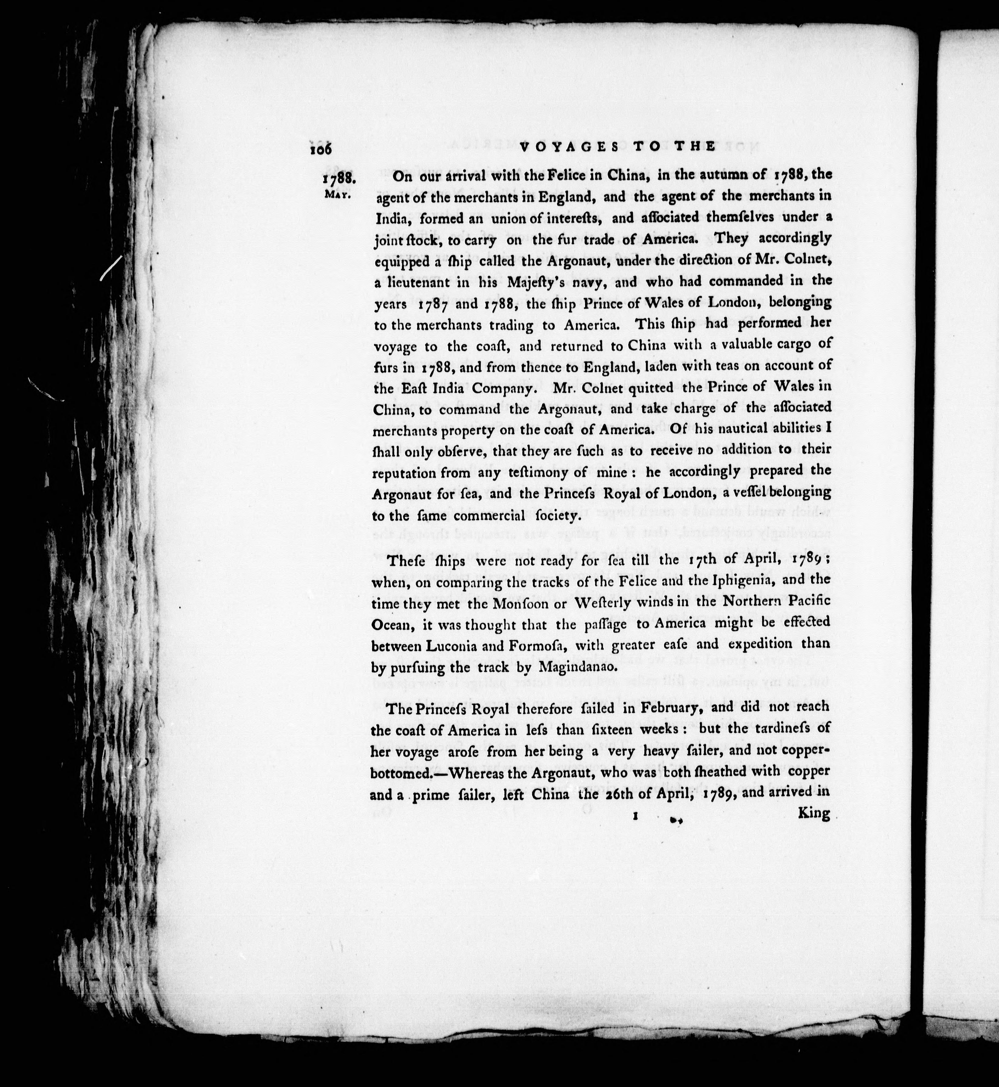 Voyages made in the years 1788 and 1789 from China to the north west coast of America : to which are prefixed an introductory narrative of a voyage performed in 1786 from Bengal in the ship Nootka, observations on the probable existence of a north west passage, and some account of the trade between the north west coast of America and China, and the latter country and Great Britain