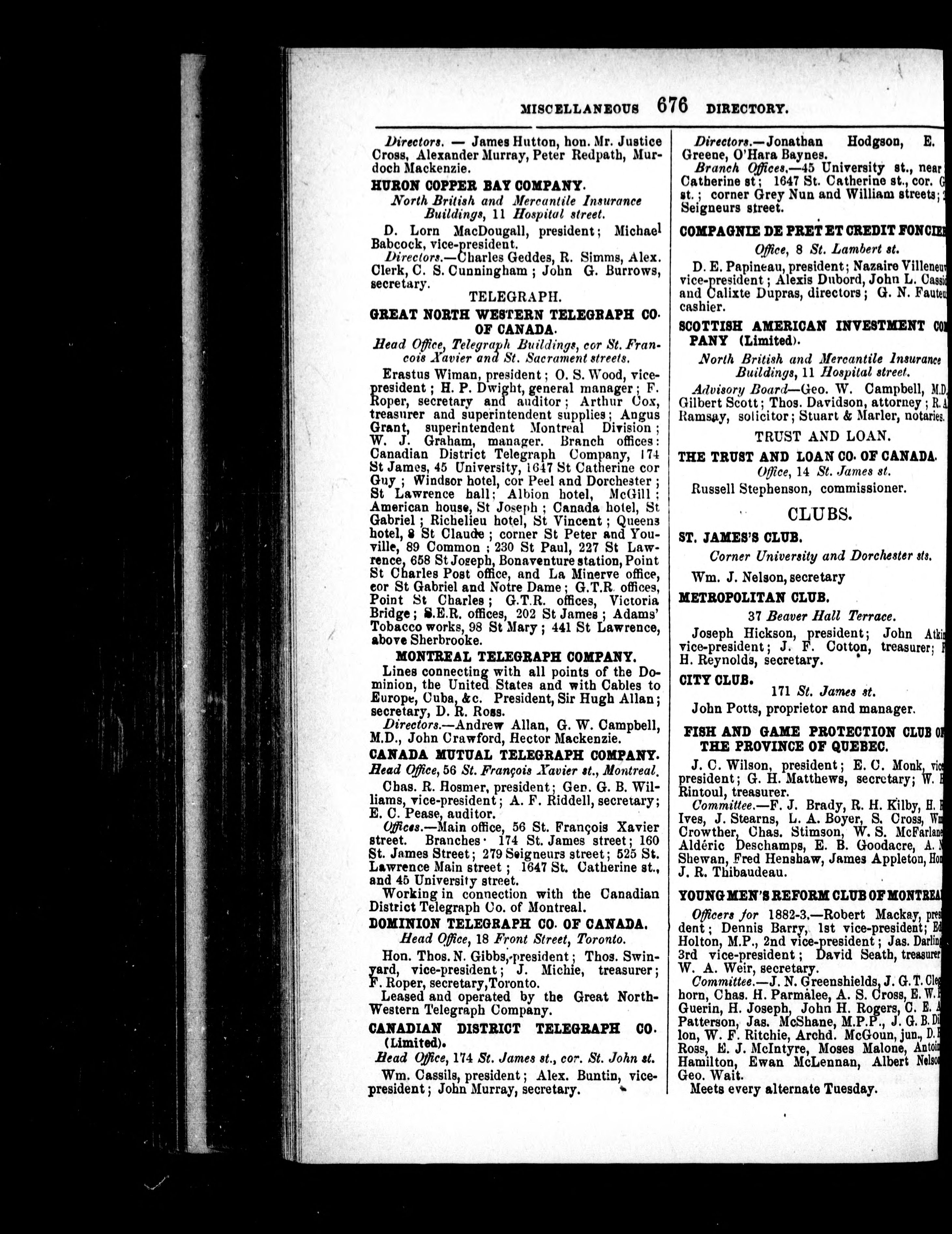 Lovell's Montreal directory for 1882-83 : containing an alphabetical directory of the citizens, a street directory, an advertisers classified business directory, and a miscellaneous directory ... corrected to June 15th, 1882.