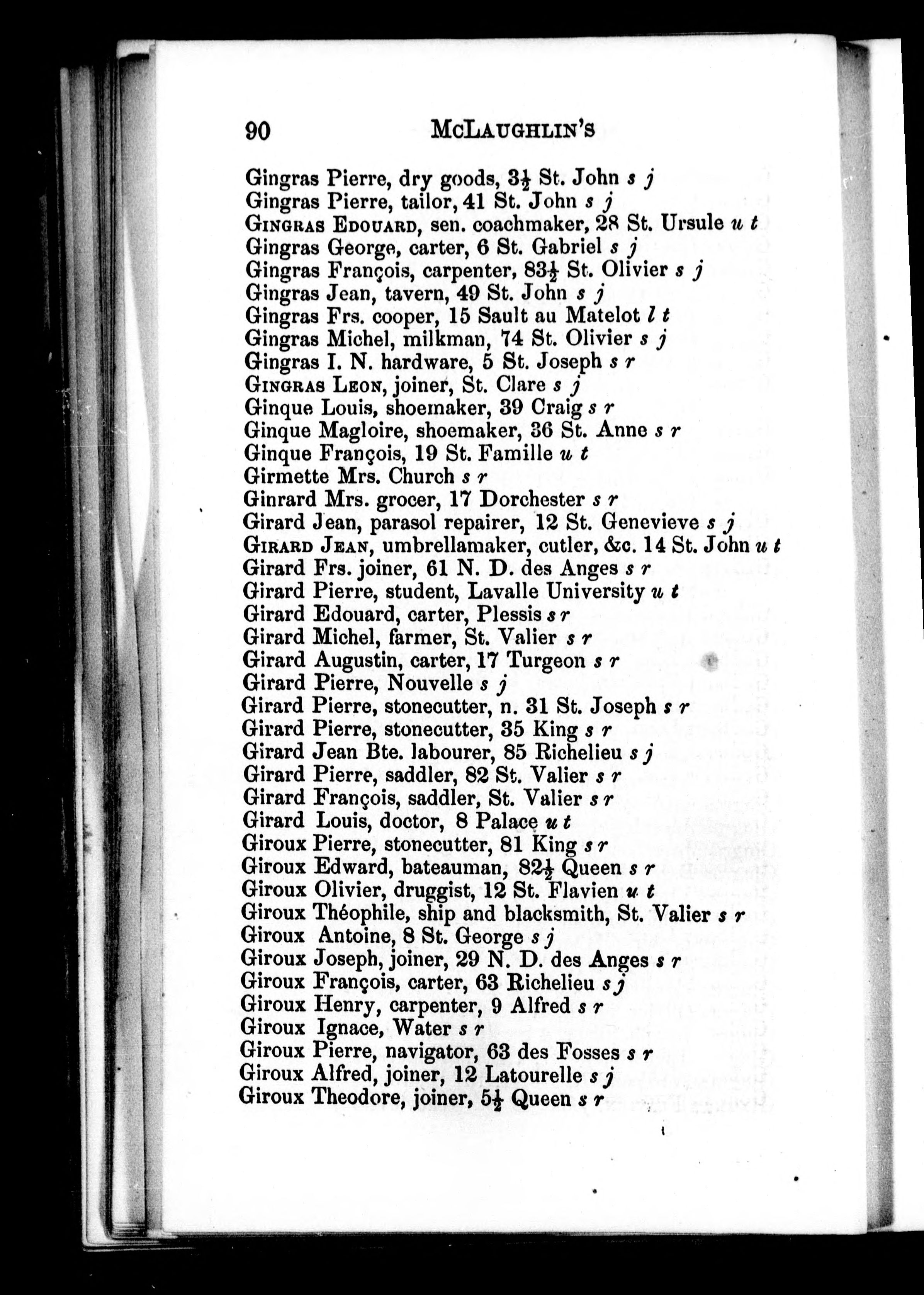 McLaughlin's Quebec directory : with a plan of the city, containing an alphabetical list of the inhabitants generally; a business directory, devoted to the interests of assurance and electric telegraph companies, and business and professional men, supporters of this work; also tide table, public offices, incorporate bodies, taxes, Canadian tariff, national societies, etc.