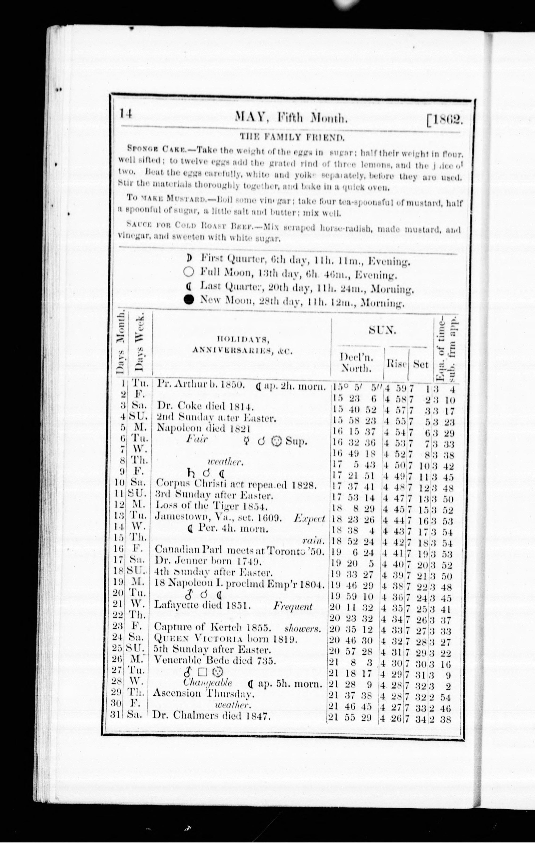 - The Provincial Wesleyan almanack, for the year of Our Lord 1862 : containing all necessary astronomical calculations, prepared with great care for this special object : together with a large amount of general intelligence, railway, telegraph, and post office regulations, religious and statistical information, with many other matters of public and provincial interest, including a Halifax business city directory, prepared expressly for this work : making it well calculated for a large circulation as a popular and useful family almanack.