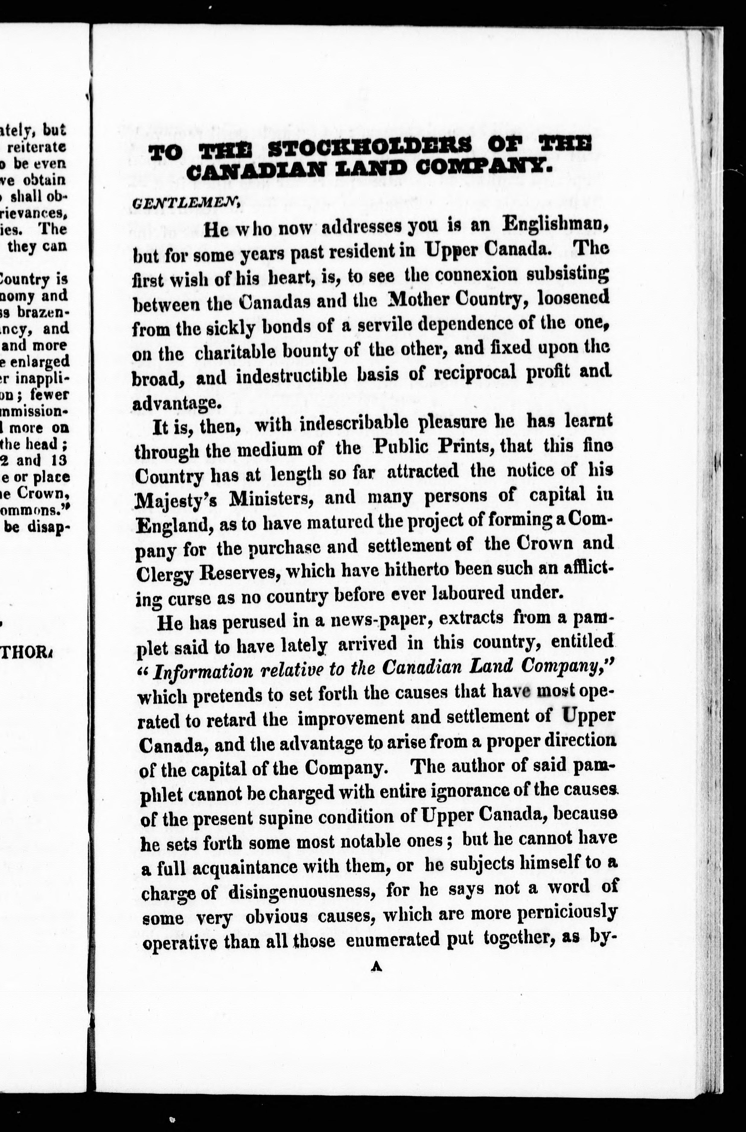 A warning to the Canadian Land Company [i.e. Canada Company] : in a letter addressed to that body