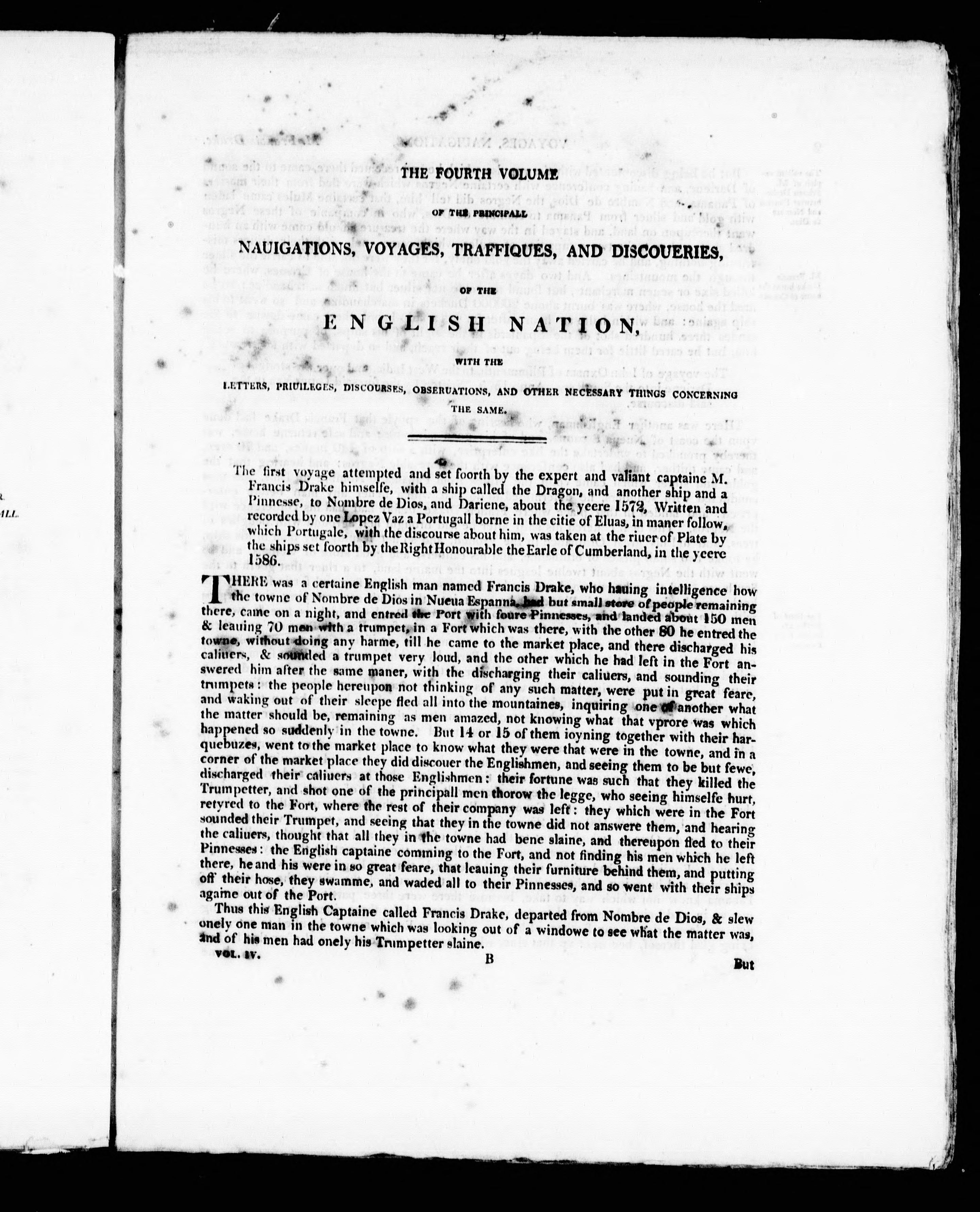Caption title: The fourth volume of the principal navigations, voyages, traffiques, and discoveries of the English nation ...