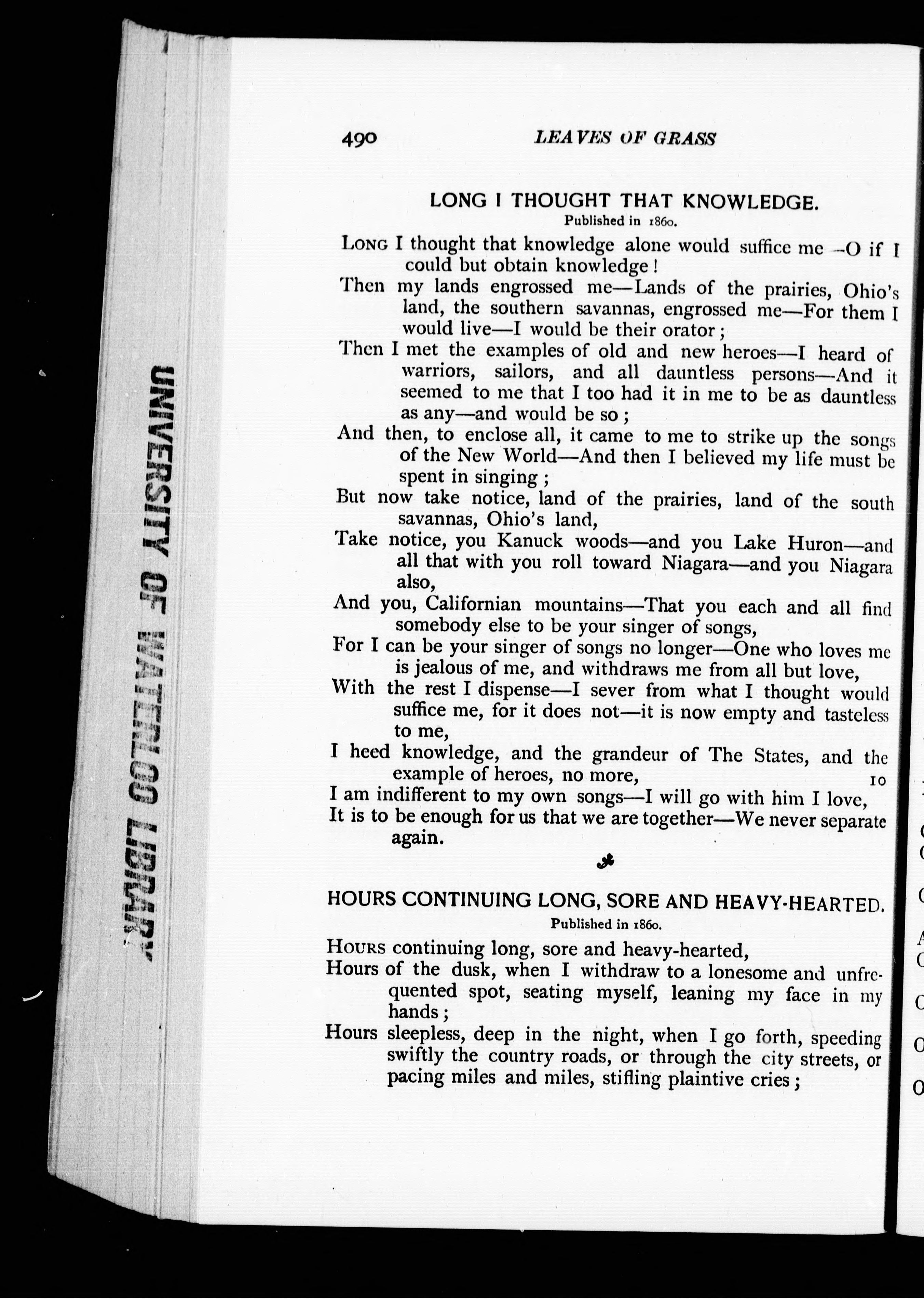 "Including a fac-simile autobiography variorum readings of the poems and a department of Gathered leaves."