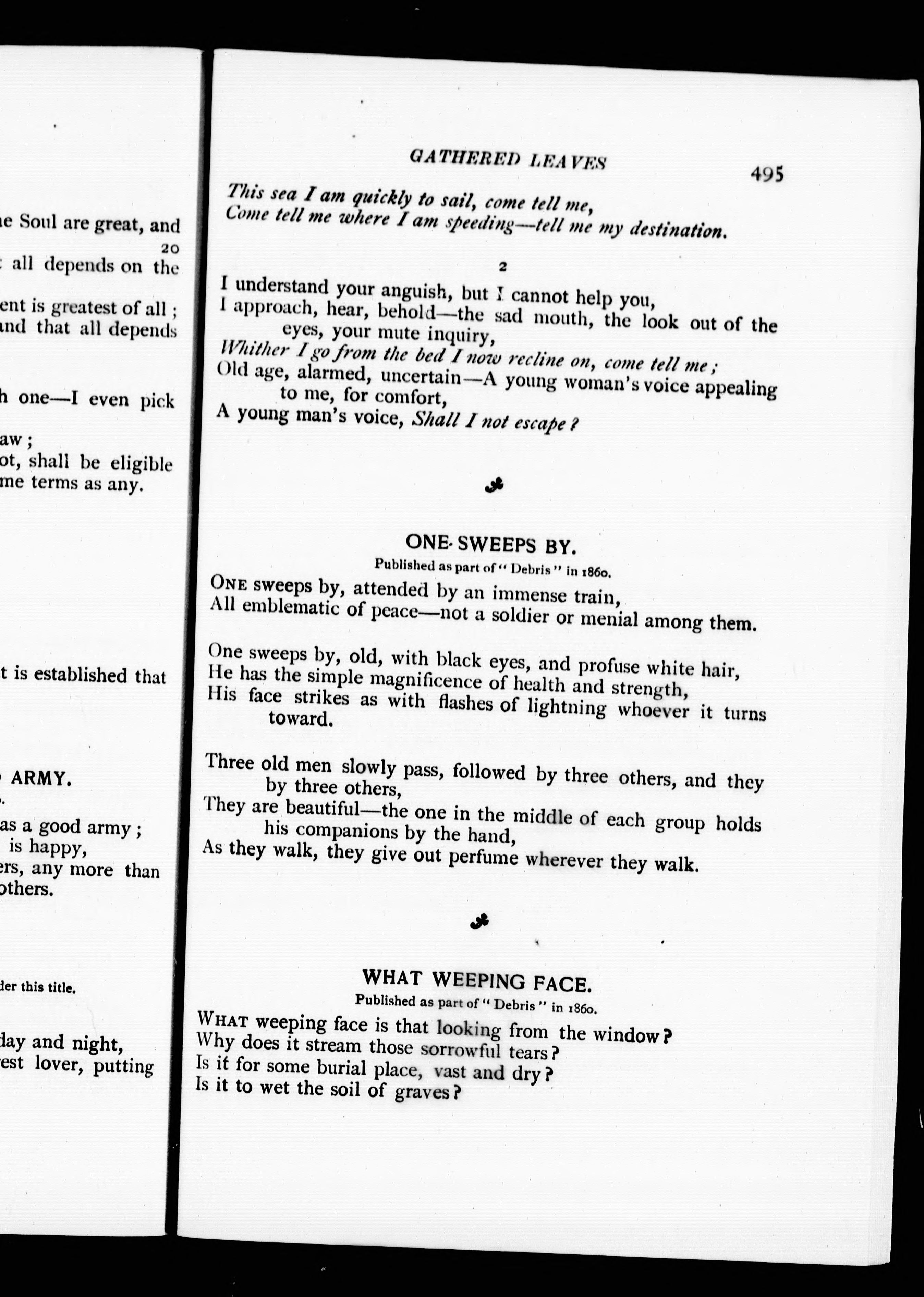 "Including a fac-simile autobiography variorum readings of the poems and a department of Gathered leaves."