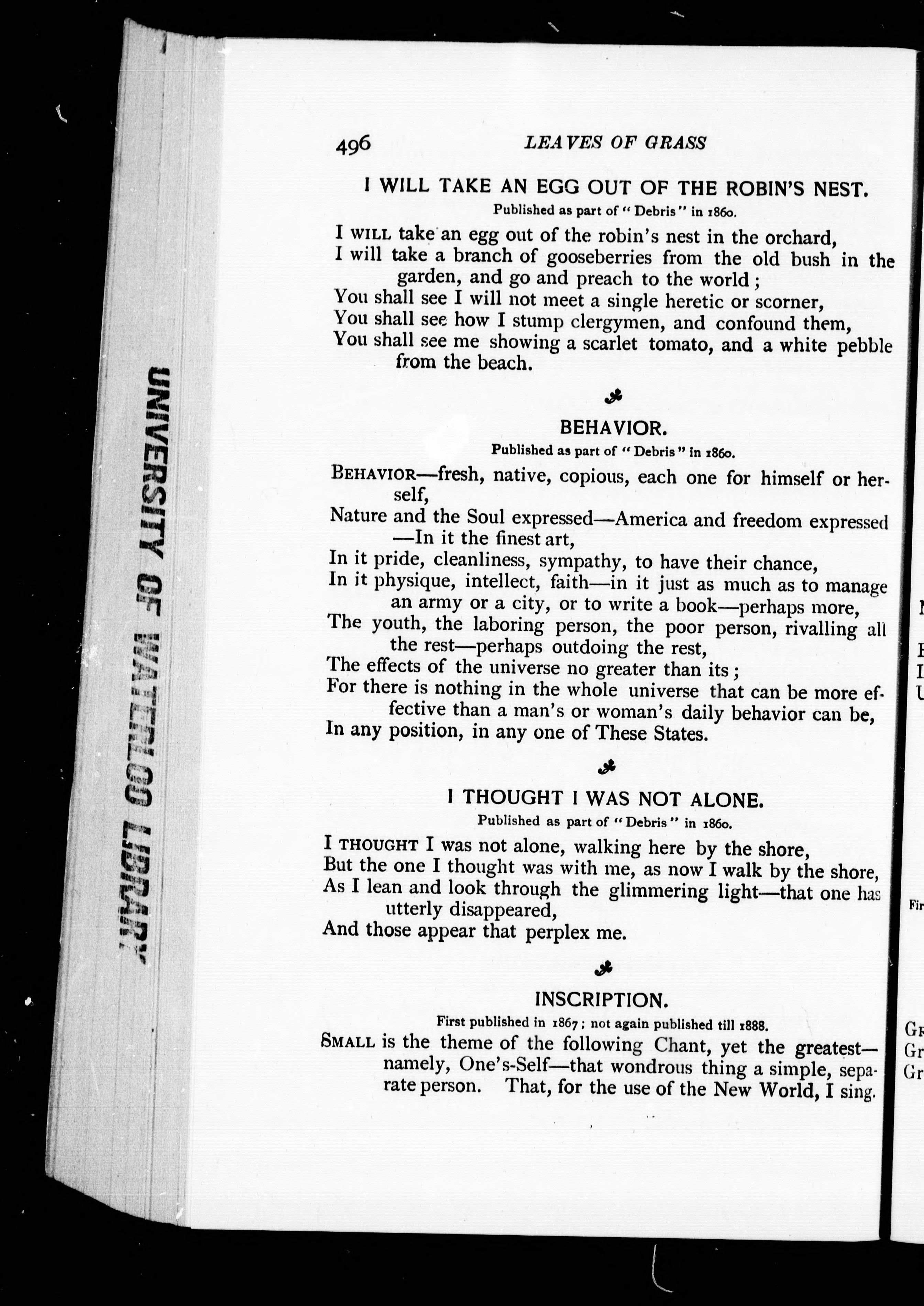 "Including a fac-simile autobiography variorum readings of the poems and a department of Gathered leaves."