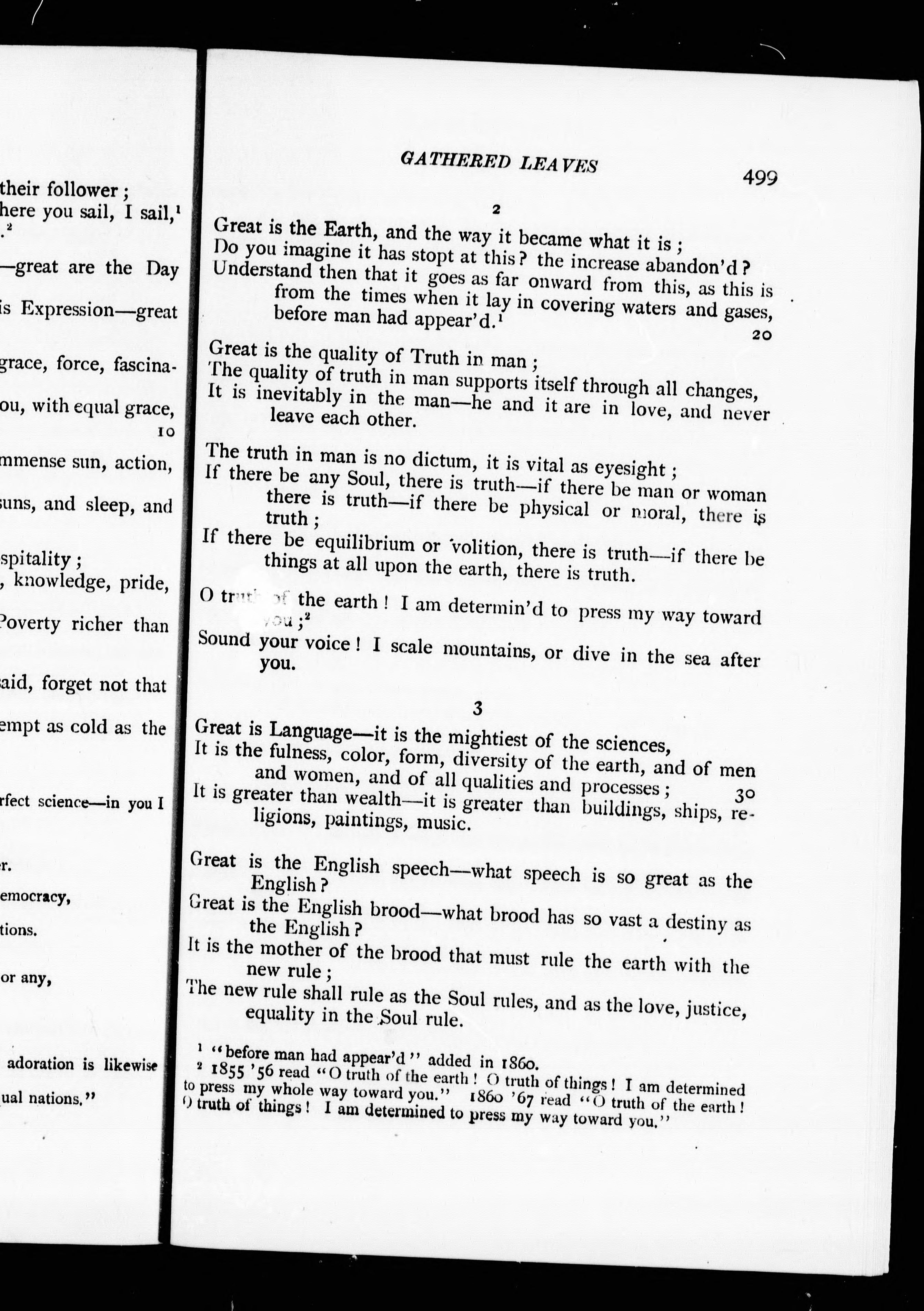 "Including a fac-simile autobiography variorum readings of the poems and a department of Gathered leaves."