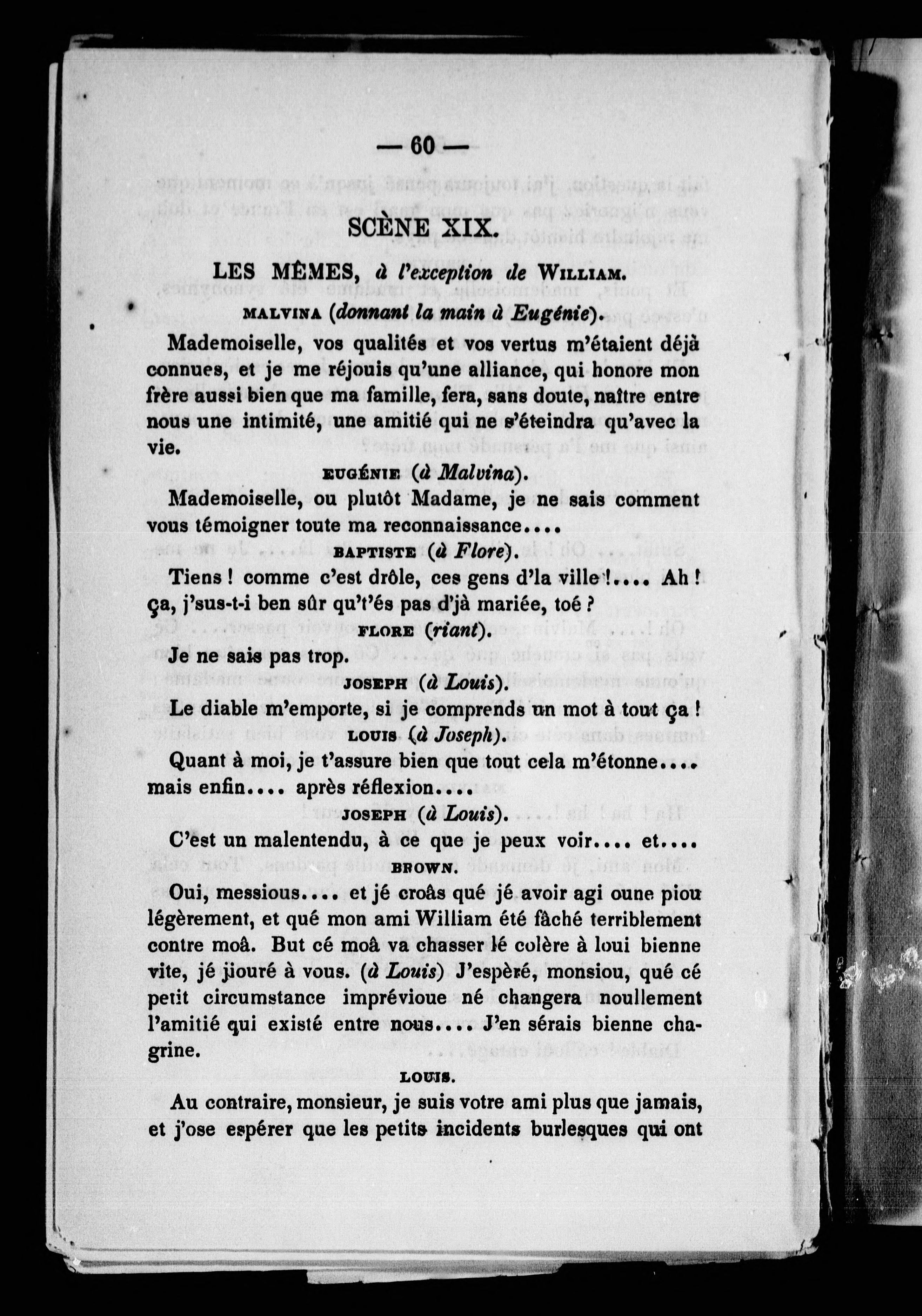 "Représentée pour la première fois à Québec, par les Amateurs Canadiens-Français le 22 avril 1857, et par les Jeunes Amateurs Canadiens, le 28 avril 1860."