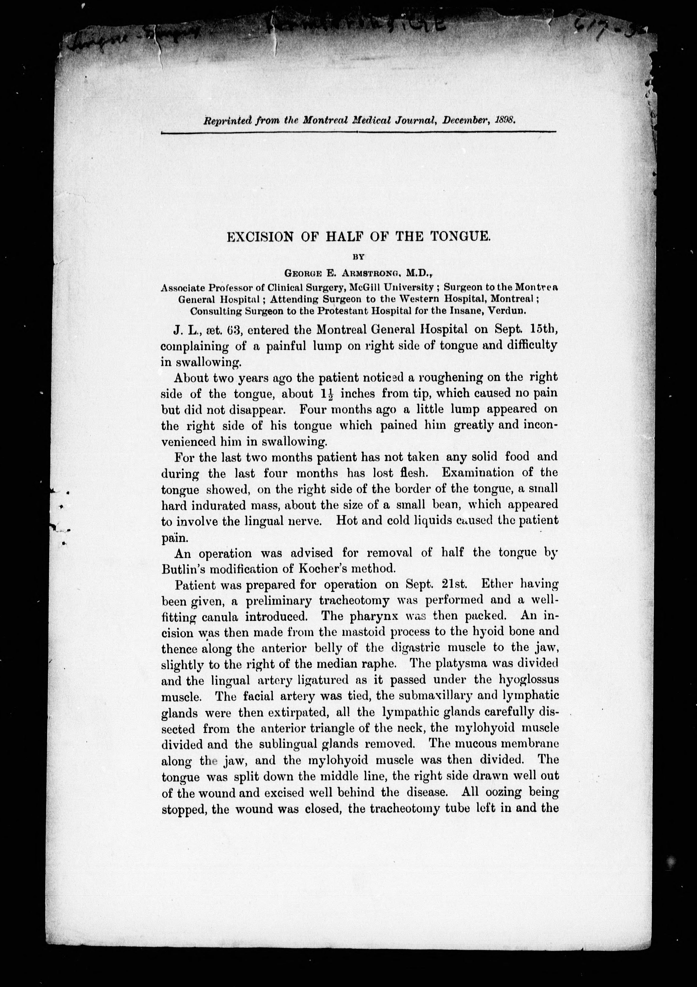 "Reprinted from the Montreal Medical Journal, December, 1898."