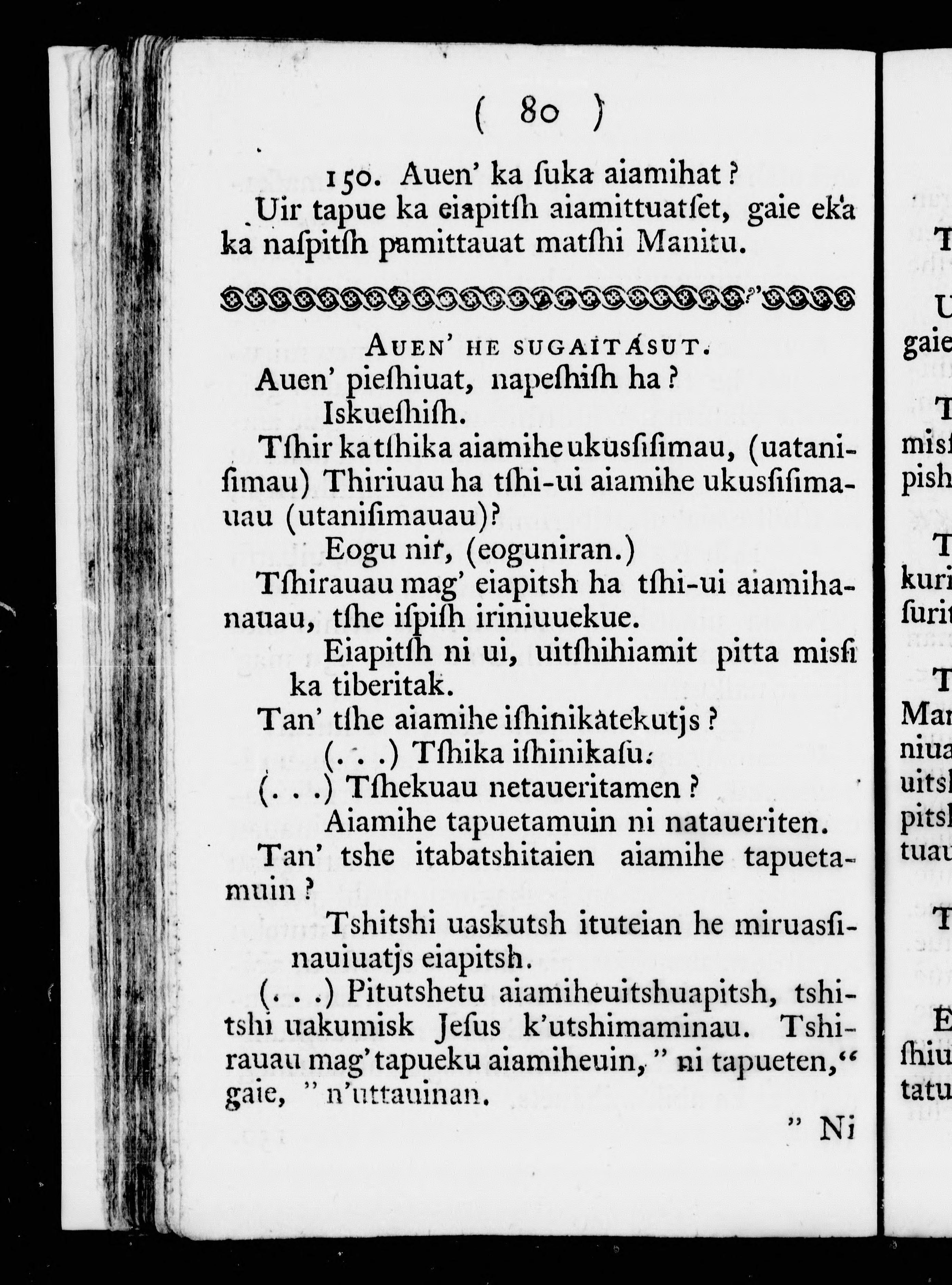 Catholic Church -- Prayer-books and devotions -- Montagnais.