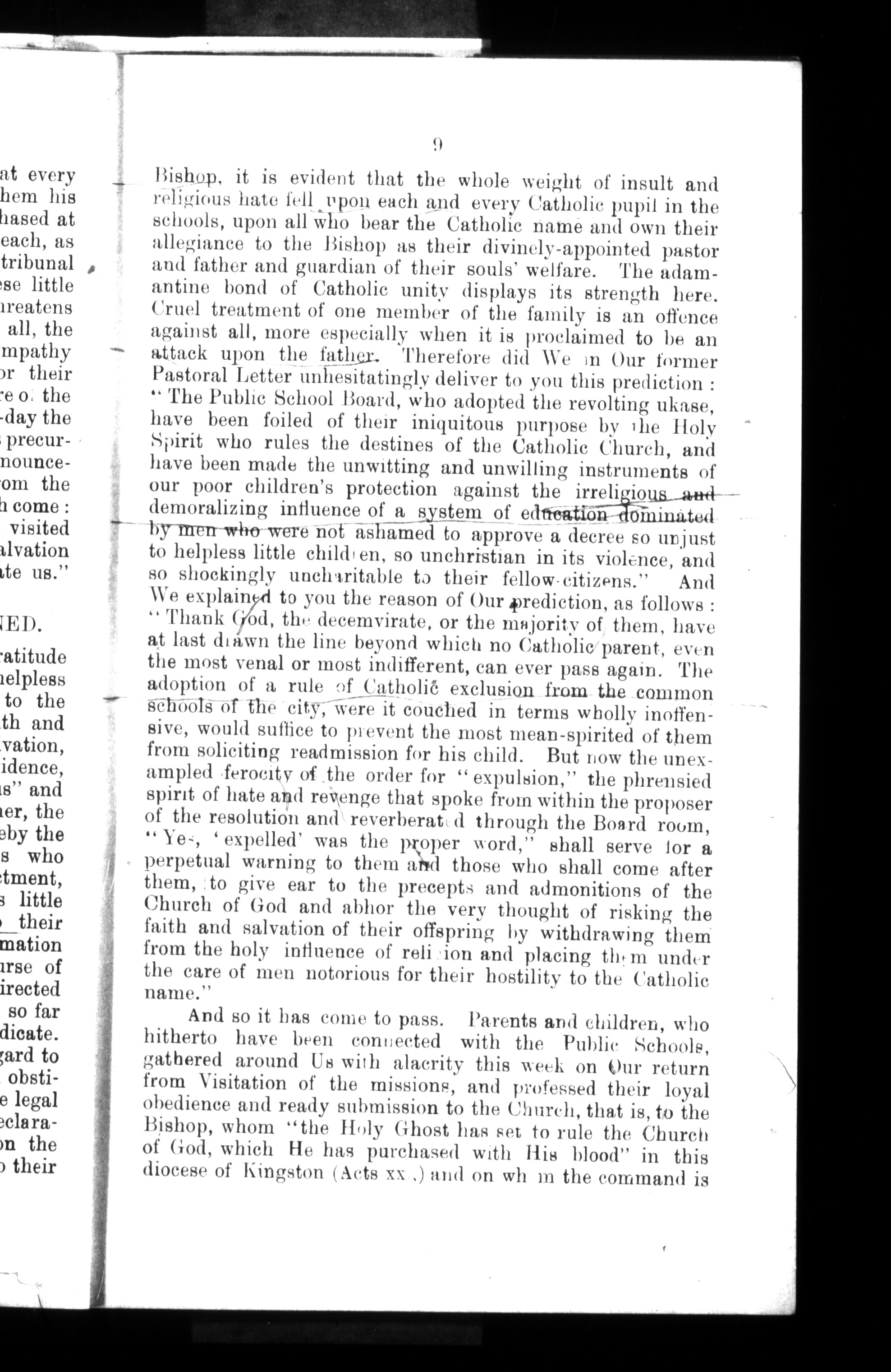 Two pastoral letters on the providential expulsion of Catholic children from the public schools