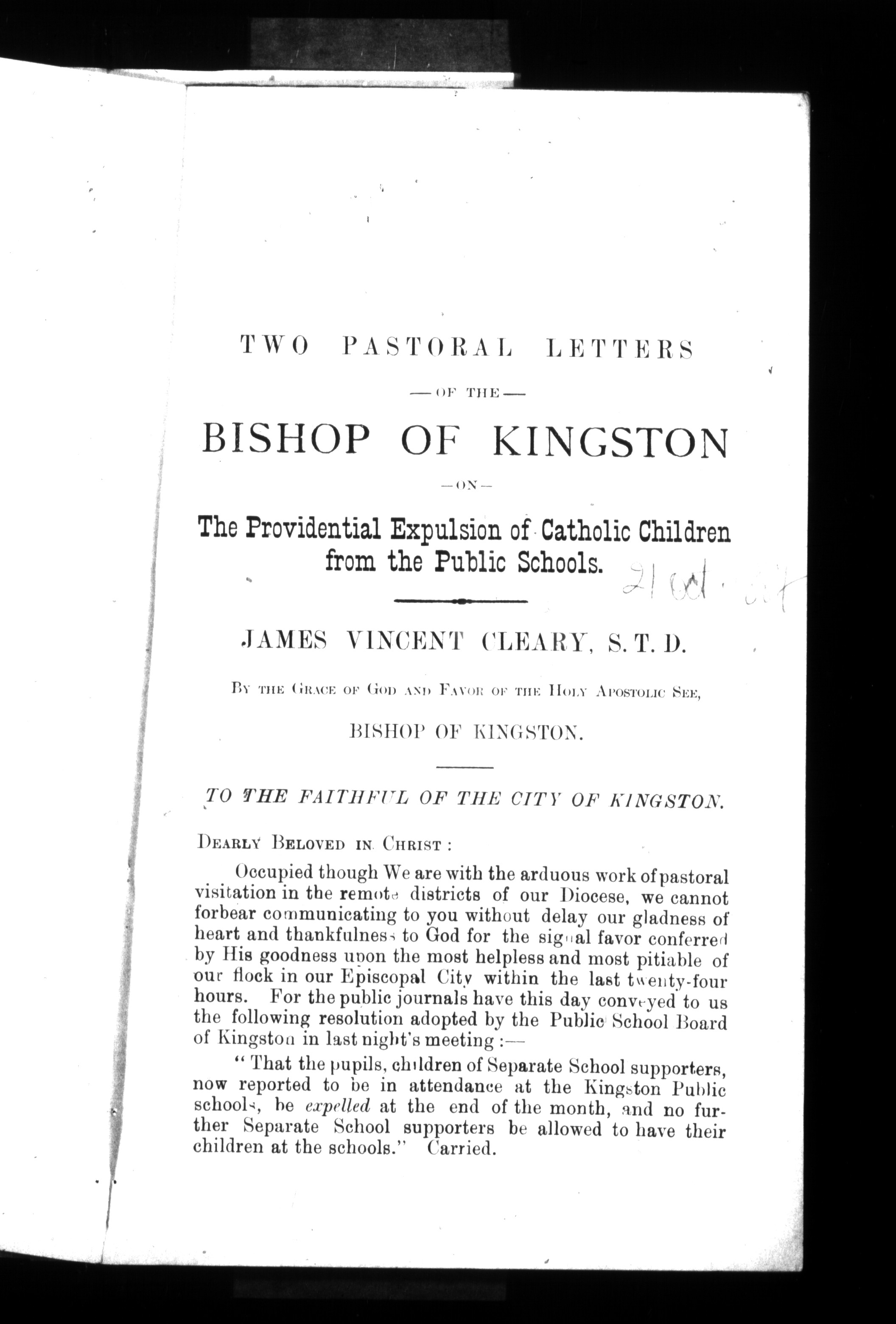 Catholic Church. Diocese of Kingston. Bishop (1880-1889 : Cleary) aut