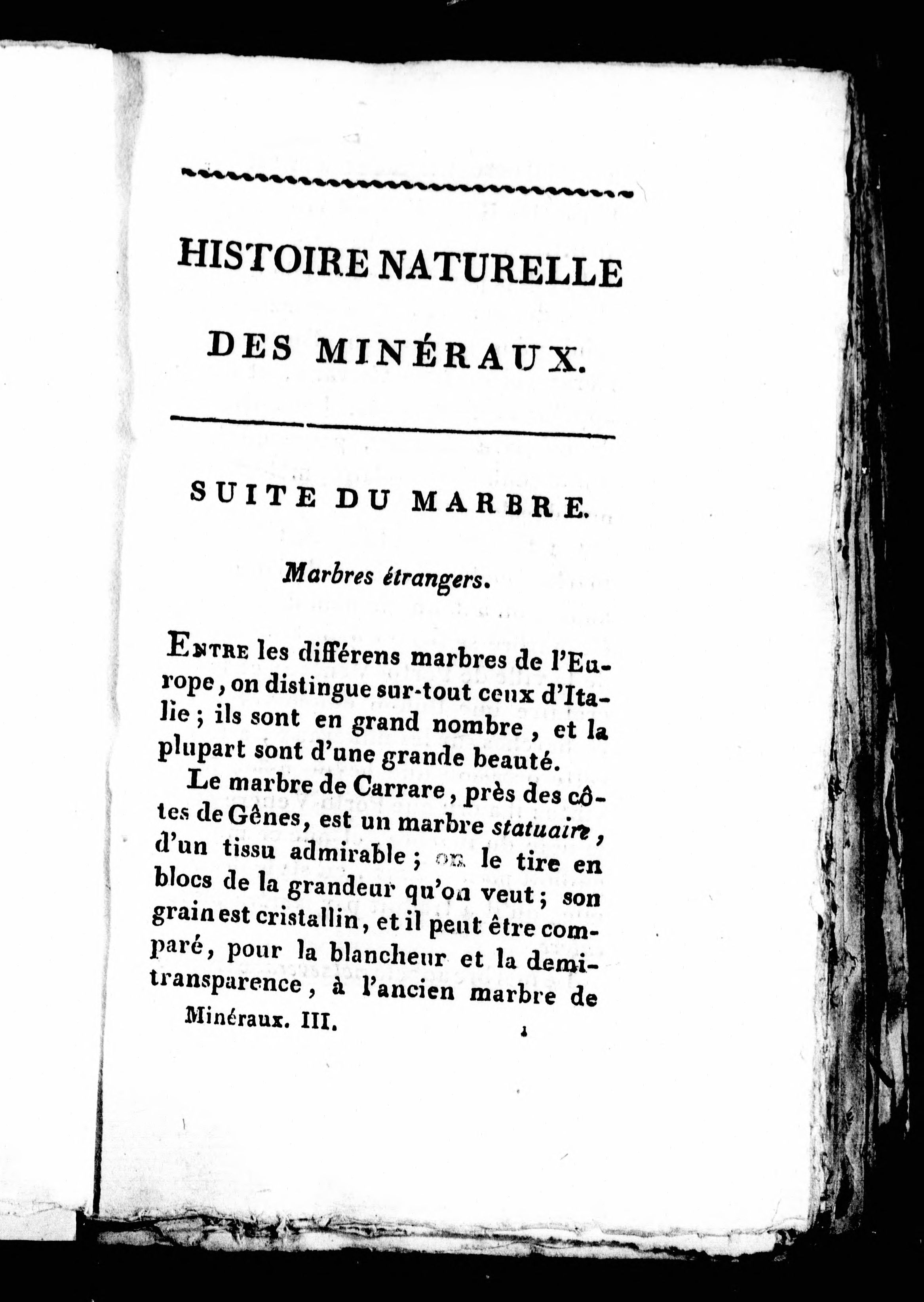 Faux titre: Histoire naturelle de Buffon, à la quelle on a joint les observations et les découvertes des plus célèbres naturalistes modernes sur la minéralogie.