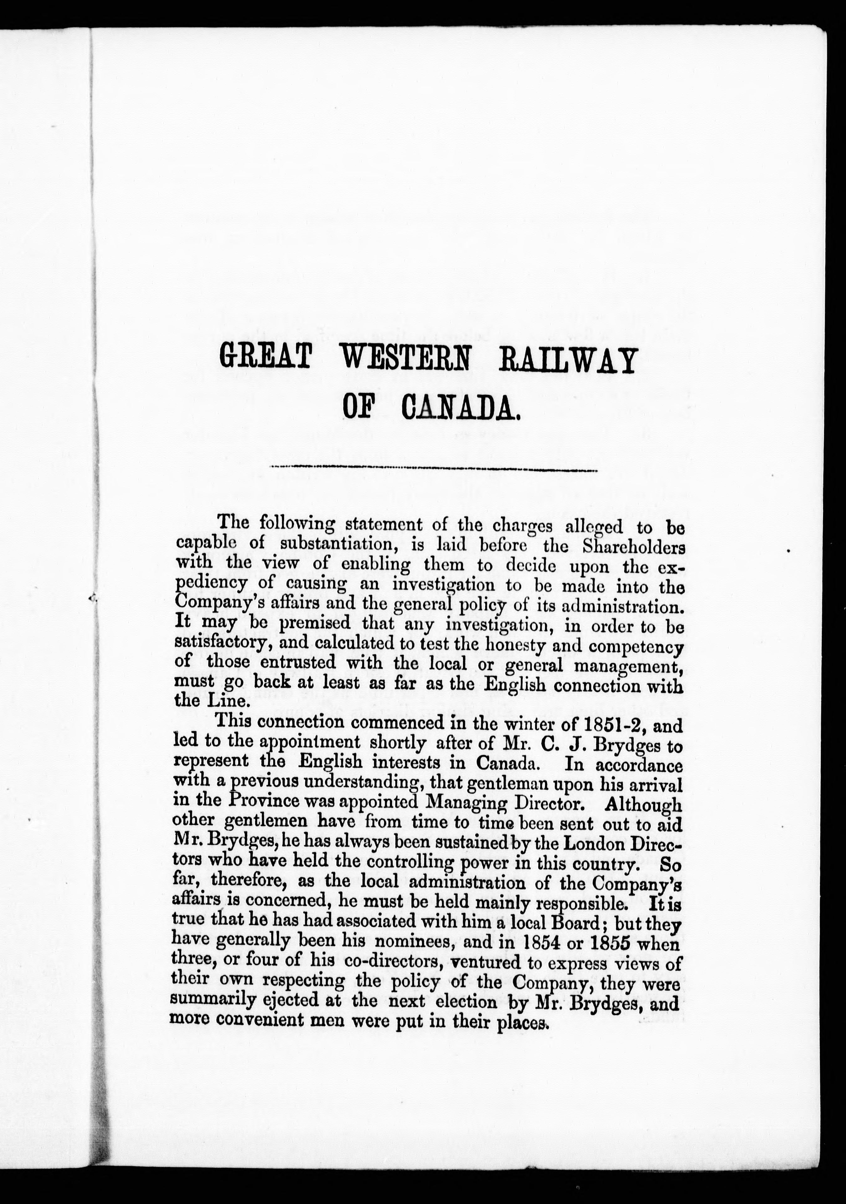 - Great Western Railway of Canada : things not generally known in England : or the true policy of the company explained