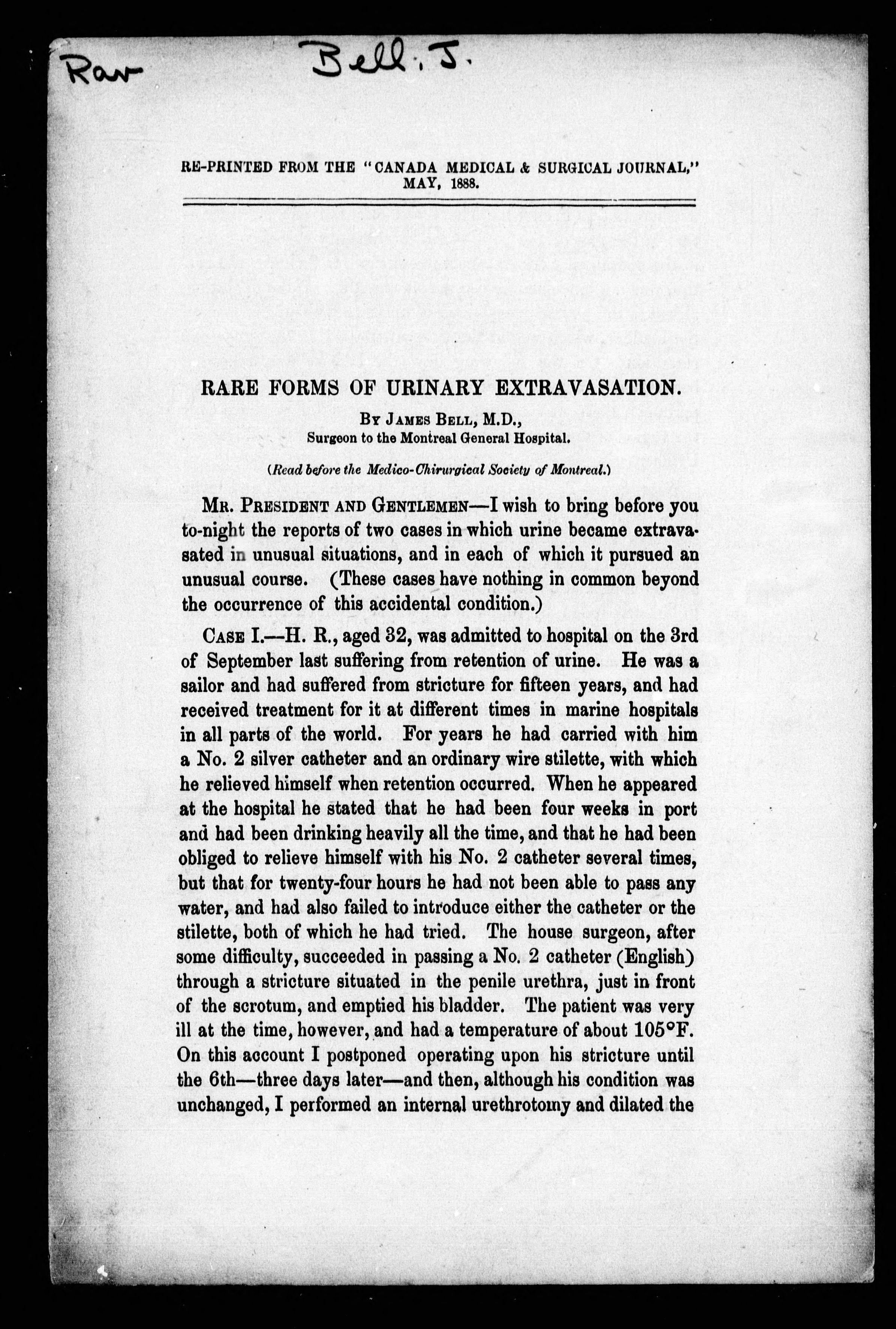 At head of title: Reprinted from the "Canada Medical & Surgical Journal," May, 1888.