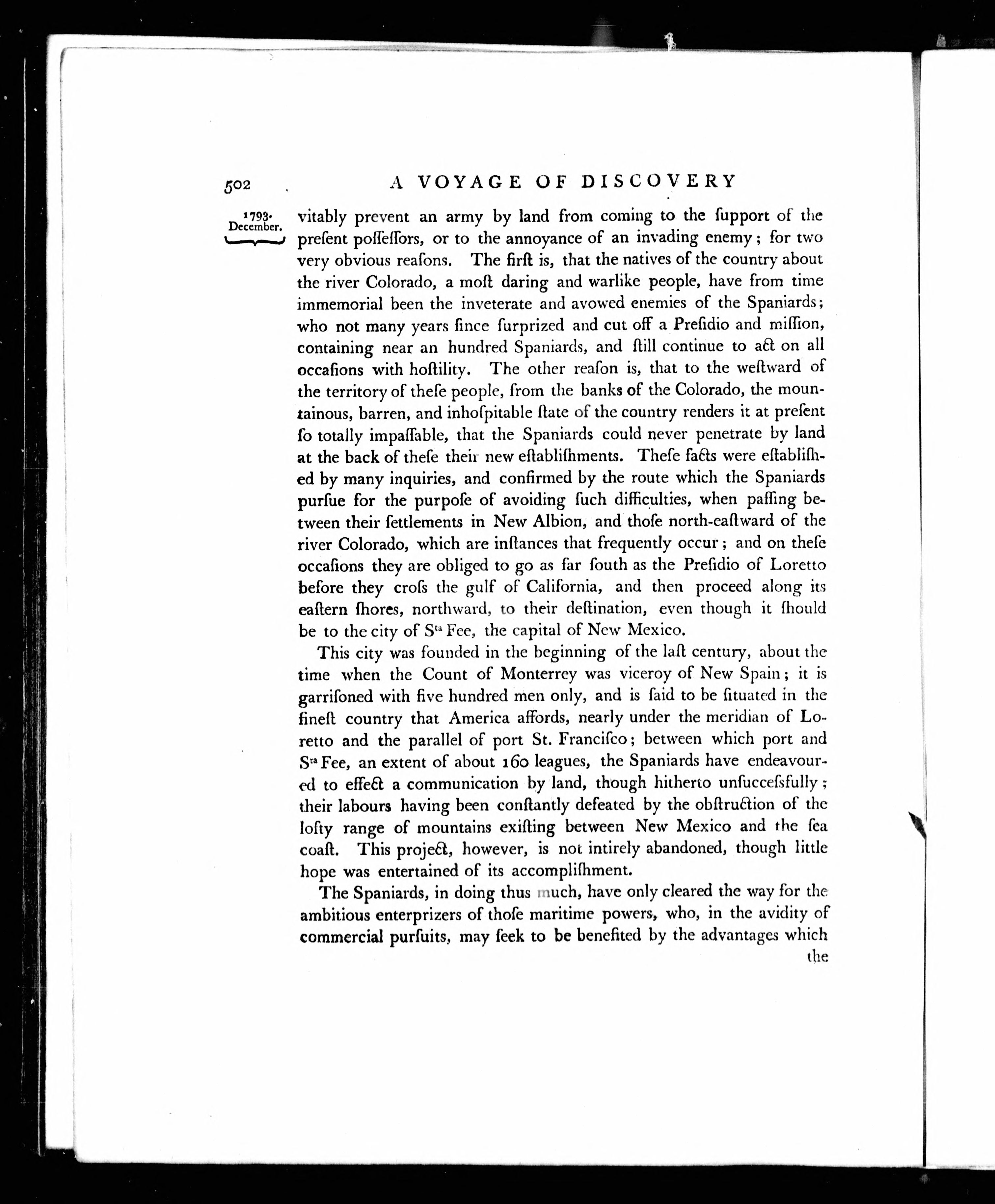 A voyage of discovery to the north Pacific Ocean, and round the world : in which the coast of North-West America has been carefully examined and accurately surveyed : undertaken by His Majesty's command, principally with a view to ascertain the existence of any navigable communication between the North Pacific and North Atlantic Oceans; and performed in the years 1790, 1791, 1792, 1793, 1794, and 1795, in the Discovery sloop of war, and armed tender Chatham, under the command of Captain George Vancouver.
