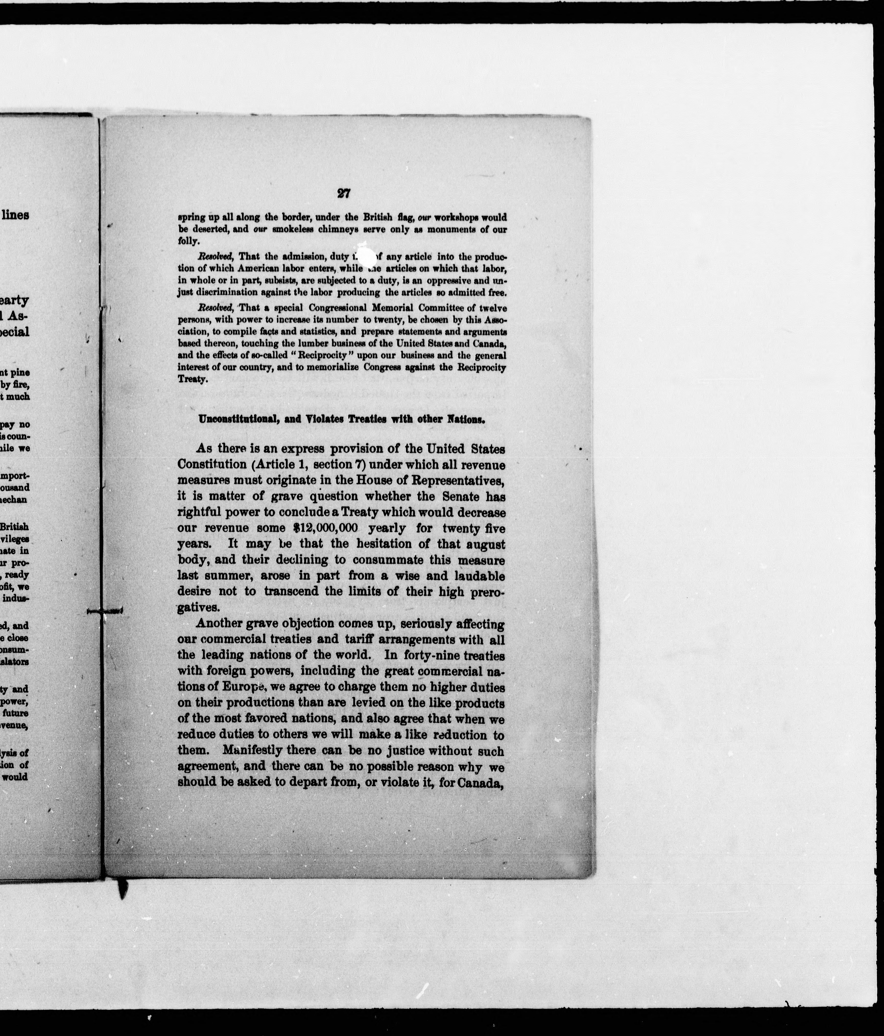 Memorial and remonstrance to the Congress of the United States at Washington D.C. from the National Association of Lumbermen : against the so-called "Reciprocity Treaty" between the United States and the British North American provinces; our lumber industry, its magnitude and importance; risks by forest fires; the Canadian lumber trade, etc., etc. - Adresse bibliographique