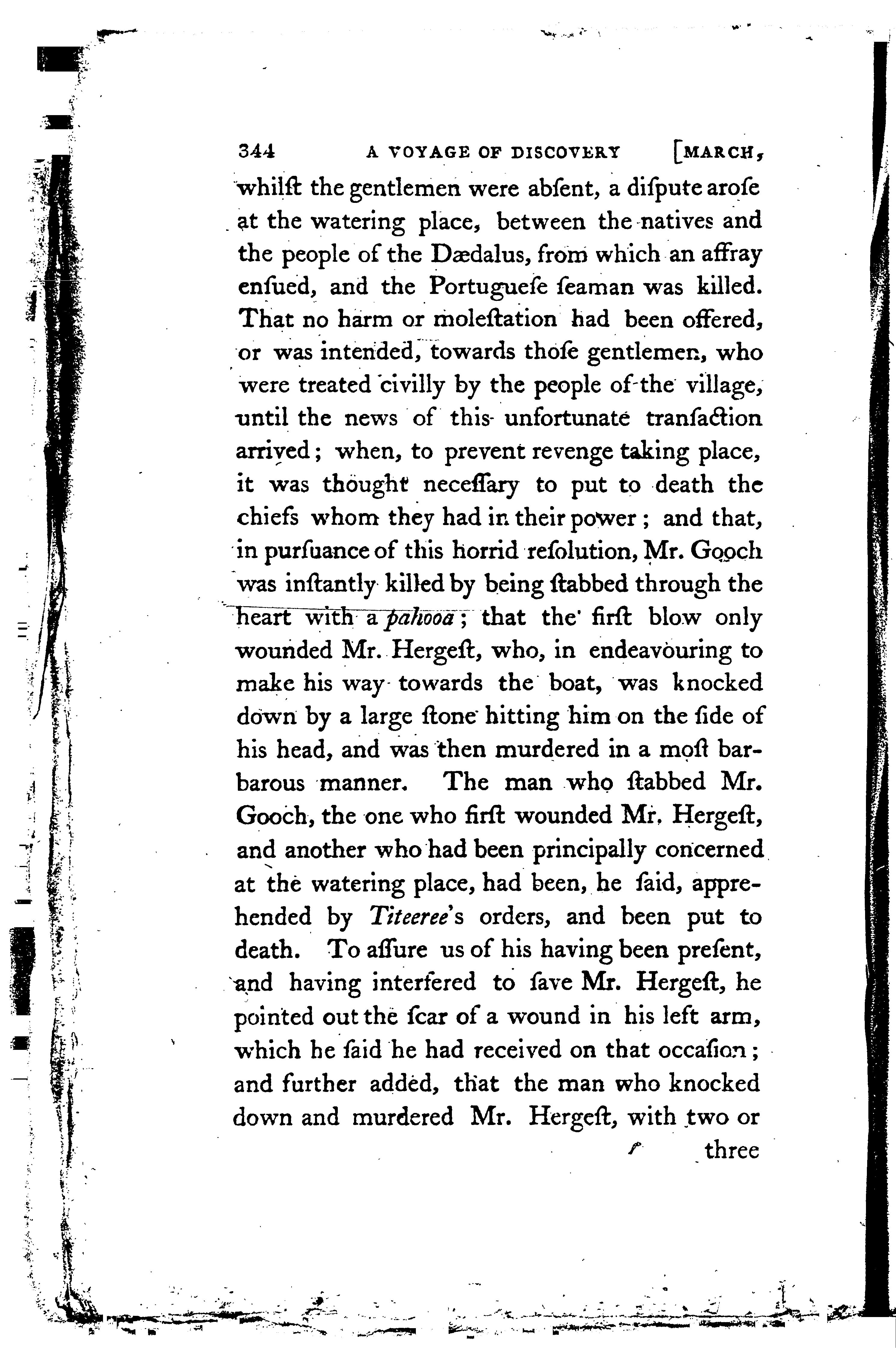 A voyage of discovery to the North Pacific Ocean, and round the world : in which the coast of north-west America has been carefully examined and accurately surveyed : undertaken by His Majesty's command, principally with a view to ascertain the existence of any navigable communication between the North Pacific and North Atlantic oceans; and performed in the years 1790, 1791, 1792, 1793, 1794 and 1795, in the Discovery sloop of war, and armed tender Chatham, under the command of Captain George Vancouver.