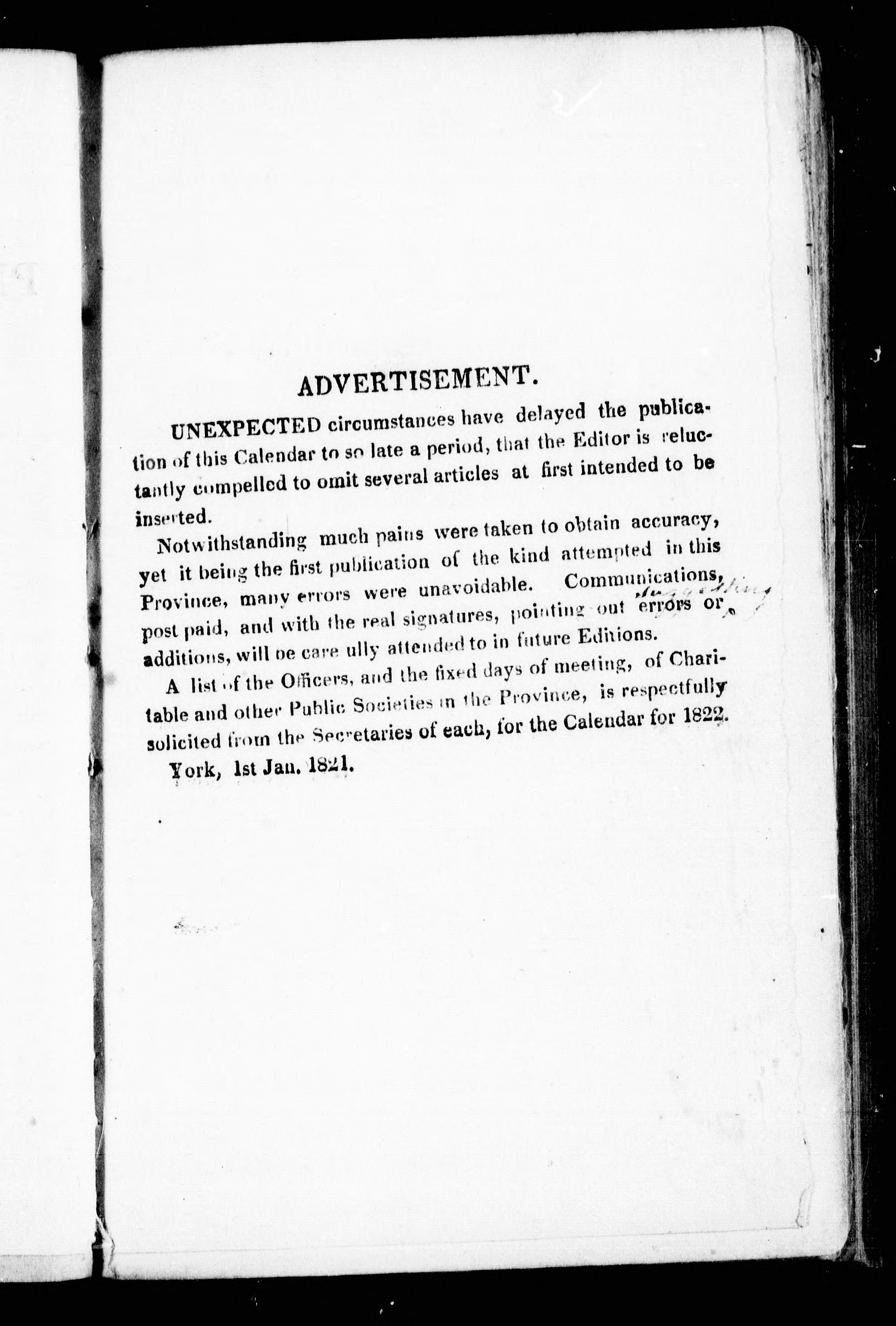 - [Toronto? : publisher not identified, 1821?]