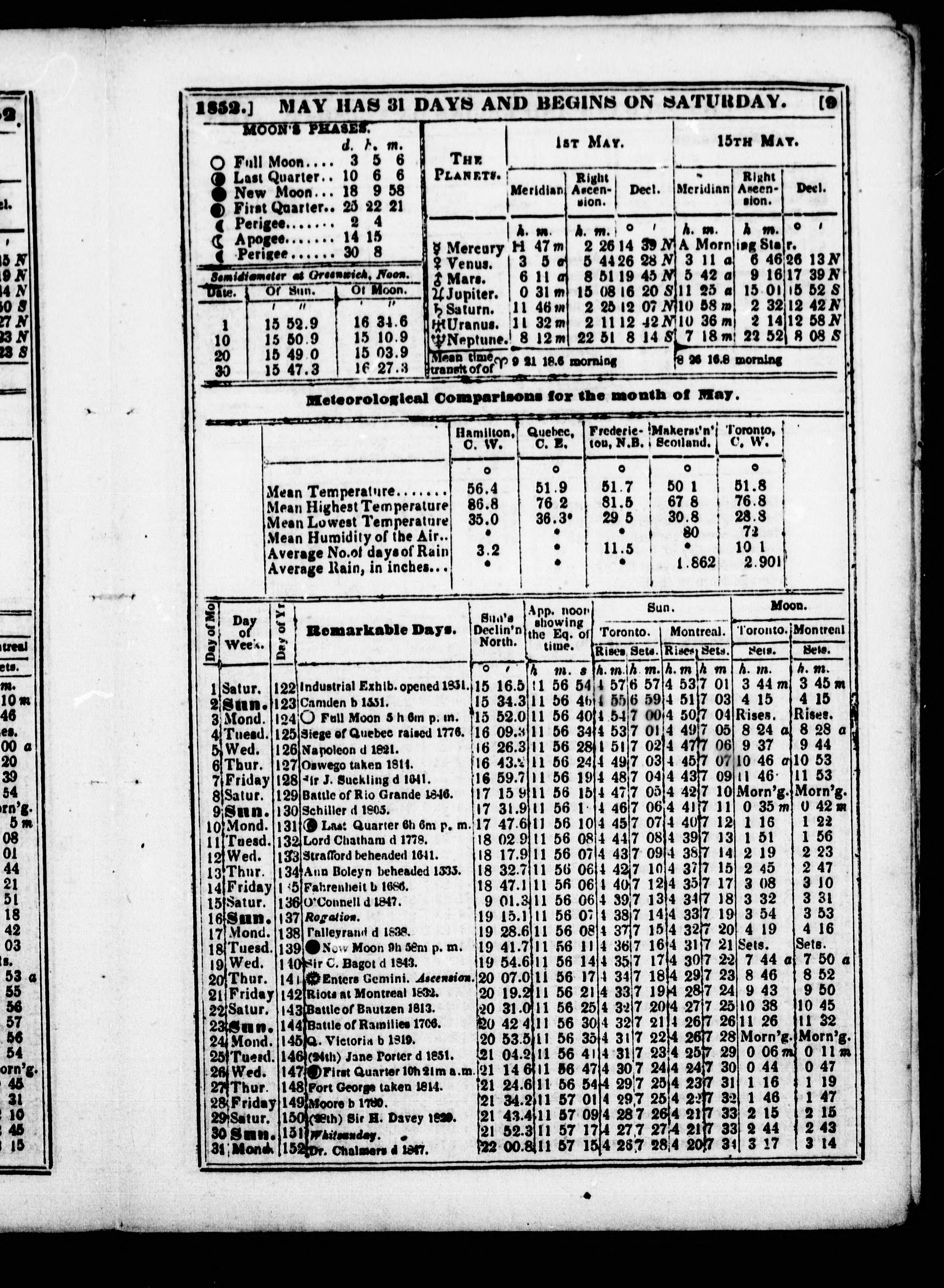 - Scobie's Canadian almanac and repository of useful knowledge, for the year 1852 being leap year : containing full and authentic commercial, statistical, astronomical, departmental, ecclesiastical, educational, financial, and general information.