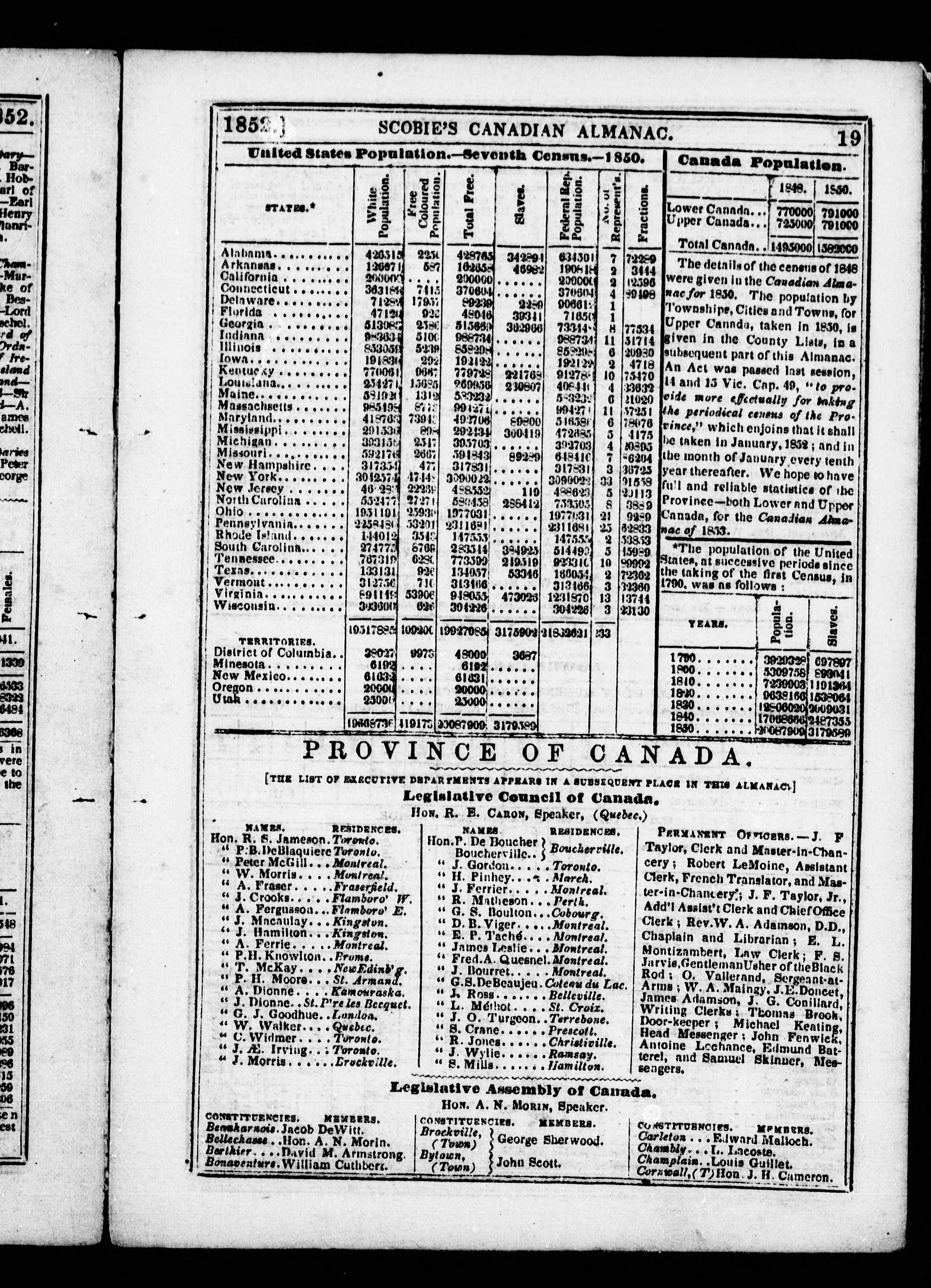 - Scobie's Canadian almanac and repository of useful knowledge, for the year 1852 being leap year : containing full and authentic commercial, statistical, astronomical, departmental, ecclesiastical, educational, financial, and general information.