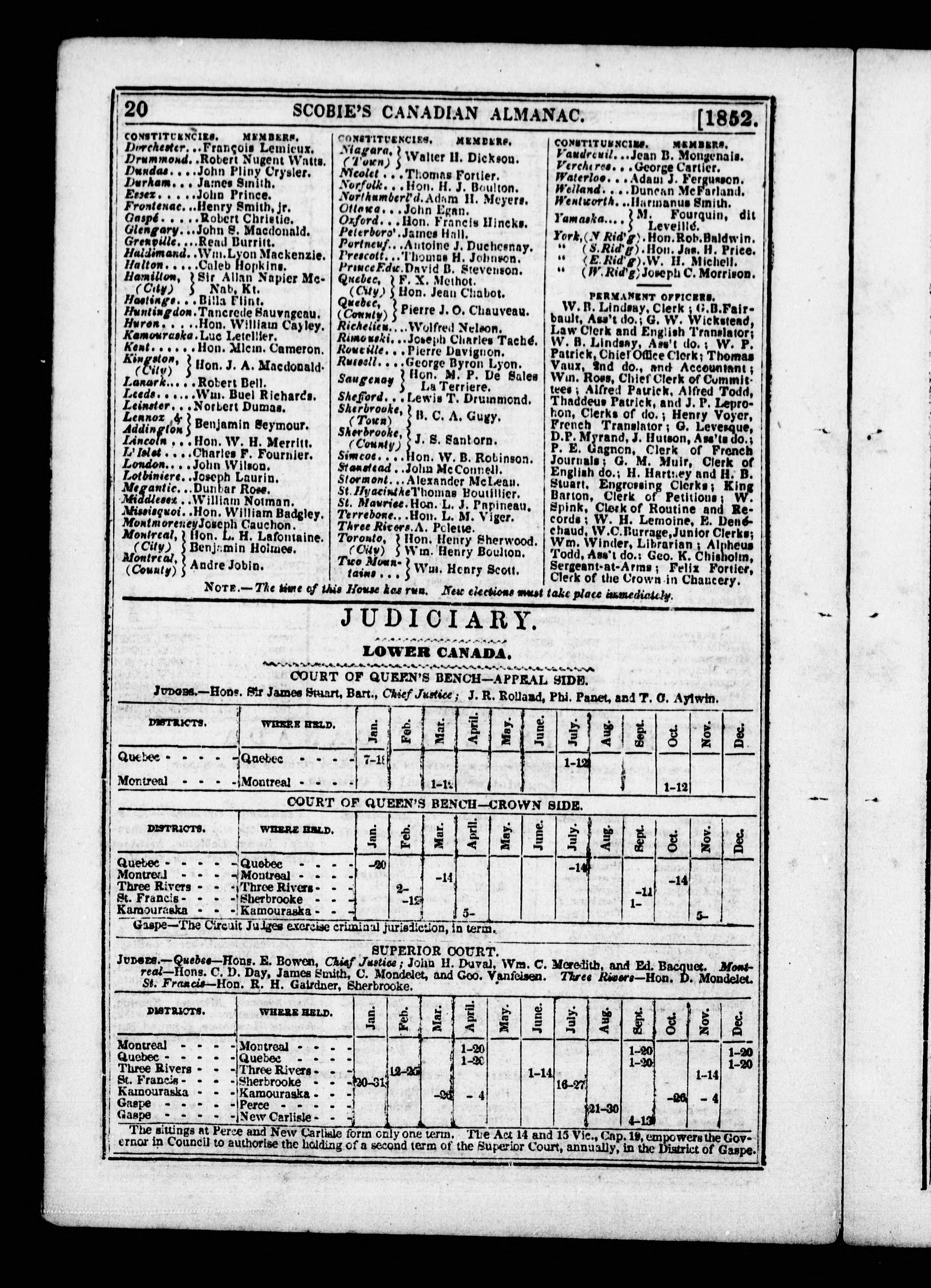 - Scobie's Canadian almanac and repository of useful knowledge, for the year 1852 being leap year : containing full and authentic commercial, statistical, astronomical, departmental, ecclesiastical, educational, financial, and general information.