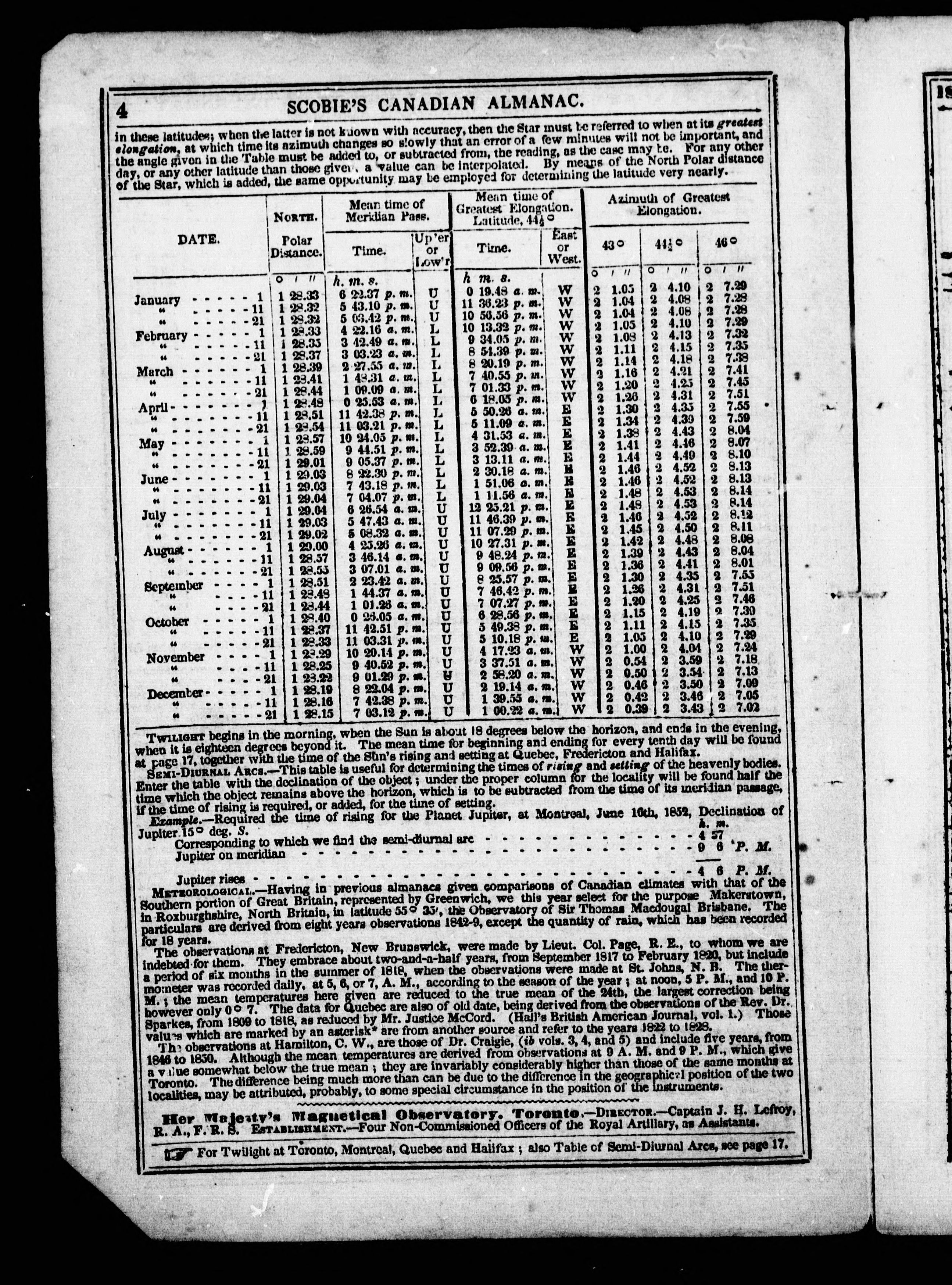- Scobie's Canadian almanac and repository of useful knowledge, for the year 1852 being leap year : containing full and authentic commercial, statistical, astronomical, departmental, ecclesiastical, educational, financial, and general information.